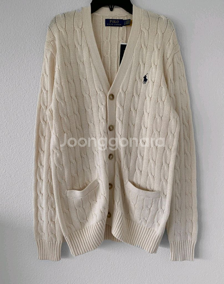랄프로렌 크림아이보리 꽈베기 포켓 가디건 구입 싱가폴 사이즈 L (꽈베기 가디건이라 55~77까지 남녀 공용으로 입는 스타일이에요) 정품 미착용 새상품 우체국택포 반품x