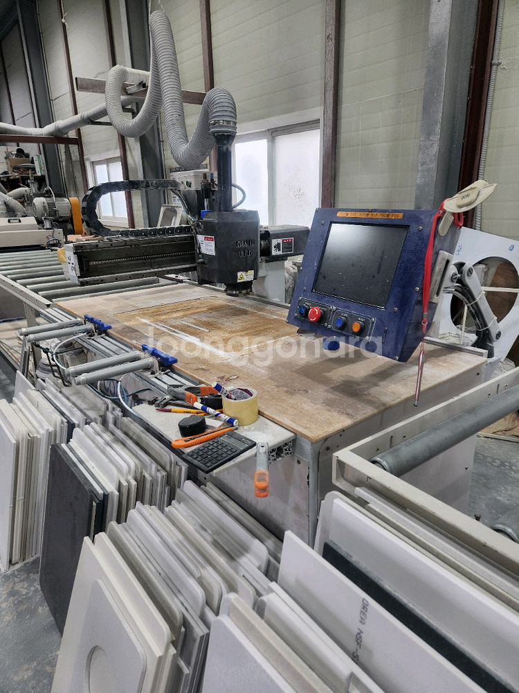 코모텍 제품 인조대리석 가공 기계 입니다. 크로스재단기 , V-컷팅기 , cnc볼타공기 입니다. V컷팅기는 다중날도 가능한 제품입니다. 다이아몬드날도 2조 있어요 초경날 1조 필요하시면 슬라이드재단기도 같이 드려요.