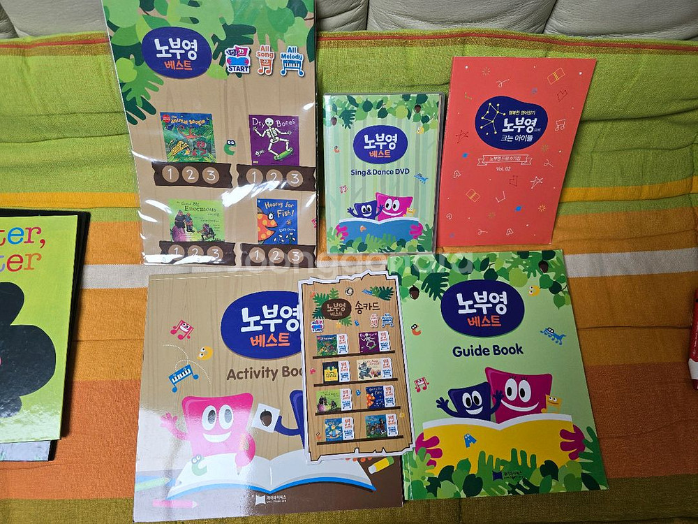 노부영 베스트 세트입니다 - 구성품은 책 15권 + 추가5권 총 20권입니다. 오디오 CD 20장(미사용), 가이드북, 액티비티북(미사용), Sing & Dance DVD1장 song카드(미사용), 가이드북 포함입니다. 구성품중 스티커는 없습니다. 본박스에 넣어드립니다. 세이펜으로 들려주며 여자아이 혼자봐서 깨끗하게 봤습니다. monster책 사진에 있는 페이지만 사용감있고 나머지 책들은 상태좋습니다. 필요하시면 사진의 페파피그 50권도 함께 드립니다. 세이펜 포함시 15만에 판매합니다. 세이펜에 노부영 음원이 들어있어서 바로 사용하실수 있어요~ 서울 양천구 목동사거리 부근에서 직거래 가능합니다 착불 10만원