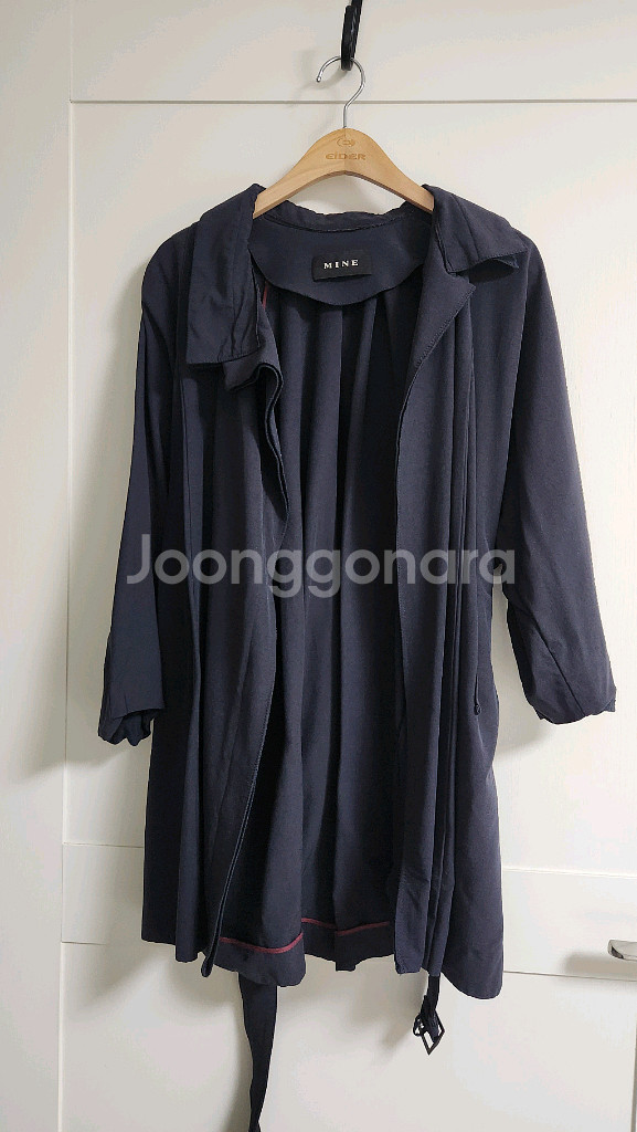 마인 네이비 색상의 트렌치 코트입니다 - 사이즈는 76입니다 55~66까지 예쁘게 입으실수 있어요 - 소재는 레이온, 나일론, 폴리우레탄, 면 혼방입니다 벨트가 있어서 허리 라인을 강조할 수 있습니다. 가을에 멋스럽게 연출하기 좋습니다. 직거래한빛마을 택배가능 추가4000원