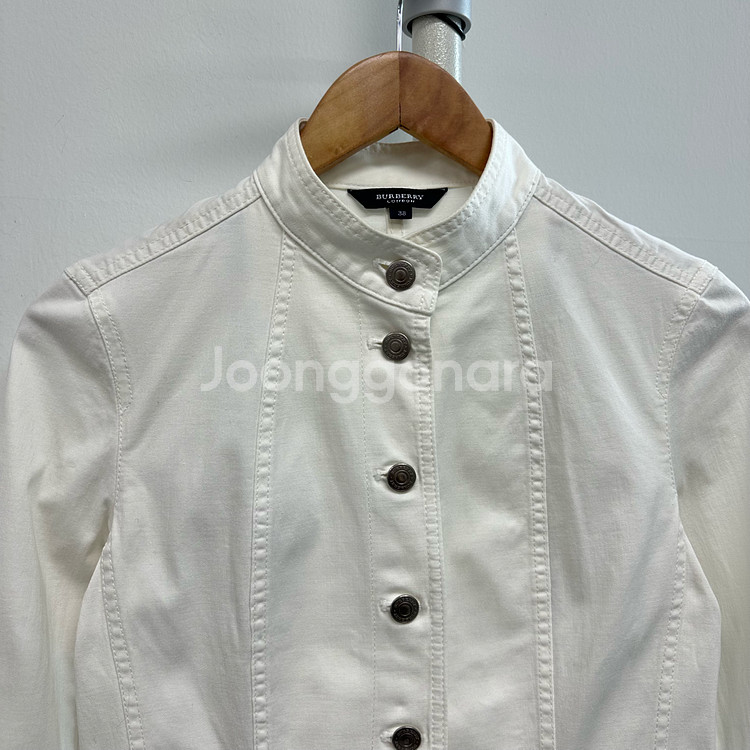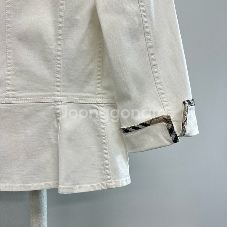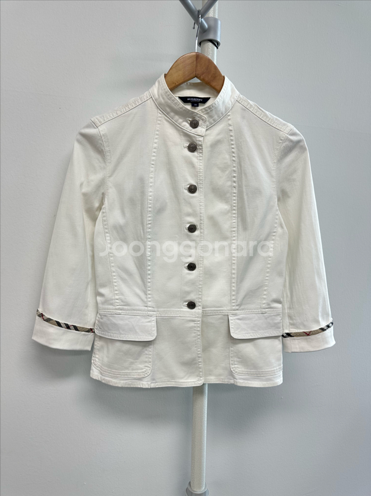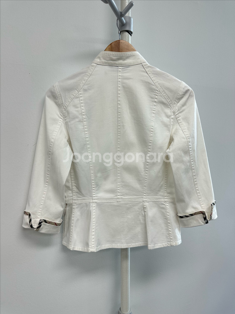 일본 매장 정품이구요. 화이트 데님 소재감 좋고 특유의 체크, 버튼 디테일이 고급지고 예뻐요. 특별한 하자 부분 없이 깨끗합니다. 흔하지 않은 제품입니다. 사이즈 표기 38 실측 사이즈 가슴 43 총길이 카라제외 56 어깨 38.5 팔 43.5