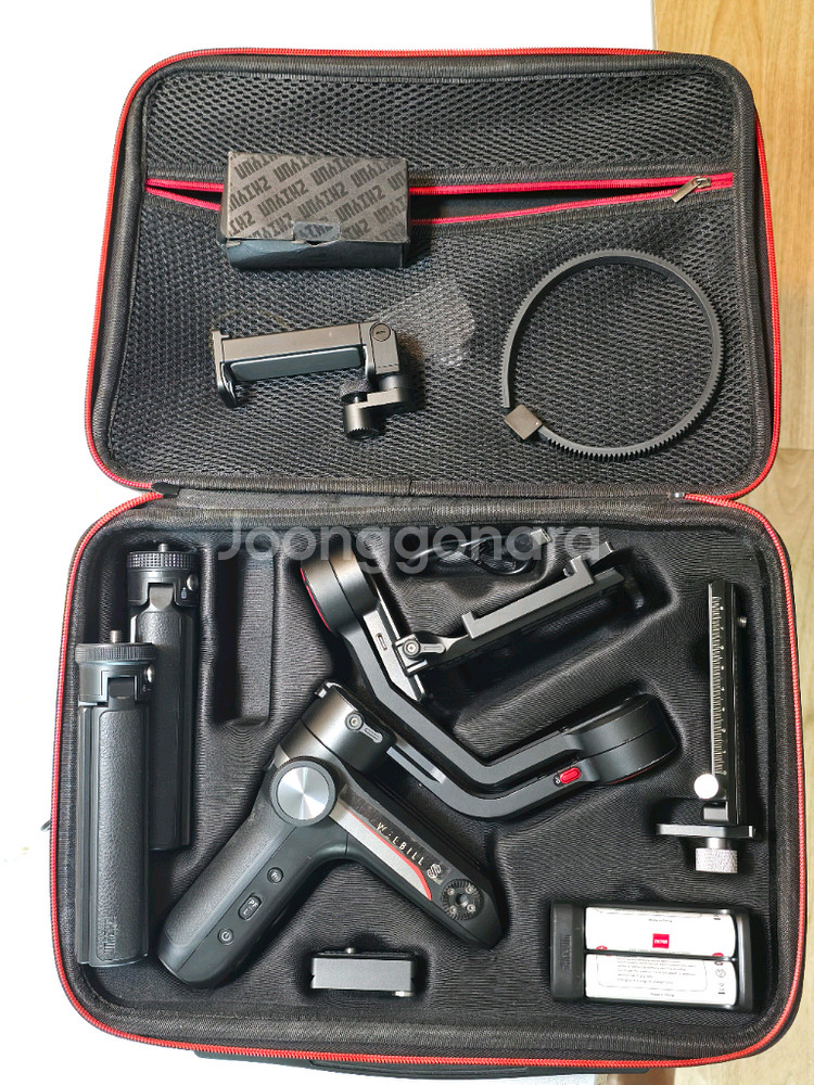 위빌s 풀 셋입니다. ◇구성품◇ 본체 삼각 다리 ×2 렌즈 초점 링 폰 홀더 배터리 ×2 배터리 충전기 여타 케이블들 전용 케이스 ◇하자사항◇ 펜 축 잠금을 걸어도 조금 헐거워 졌는지 돌아감. (동영상 첨부) 사용상 스태빌이 틀어지거나, 문제는 없음. 높은 가격때문에 접근이 어려우셨던 분들, 싸게 사용해 볼 수 있는 기회입니다. 대구 직거래 가능하구, 택배도 가능합니다. 연락주세요