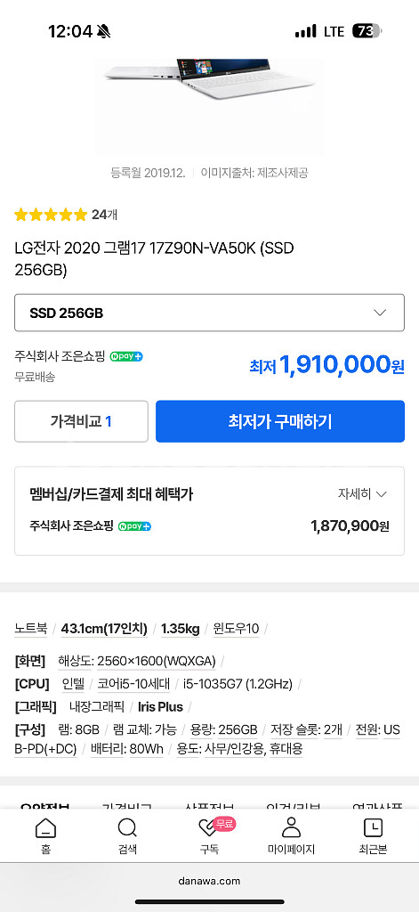 190만원에 판매되고있는 LG에서 출시한 노트북 시리즈 “LG그램” 2020.2 제조된 비교적 최신 모델이며 구매시기는 2년전입니다 CPU: i5-10세대 램: DDR4 8GB 저장소: SSD256GB 그래픽: 내장그래픽 크기: 17인치 디스플레이: QHD 무게: 1.3KG OS: Window11 사진처럼 상태는 양호하며 가벼운 무게에 뛰어난 디스플레이로 들고다니시면서 업무 보시고 공부하기에 특화된 제품입니다 LG그램중에 제일 큰 화면 사이즈인 17인치 제품이라 큰화면으로 작업 및 공부하실수있습니다 바로 사용하실수있게 윈도우11설치 해두었고 사진에 보이시듯이 한글/엑셀/워드/오피스 업무하실때 필요하신 프로그램들도 미리 설치해두었습니다 구매후 바로 사용하시면 됩니다 공부하는 학생이나 업무보는 직장인에게 선물하셔도 좋습니다 구매시에 깔끔한 화이트 톤 마우스도 같이 드리겠습니다 구성품:노트북 본체/충전기/화이트 마우스 택배거래O