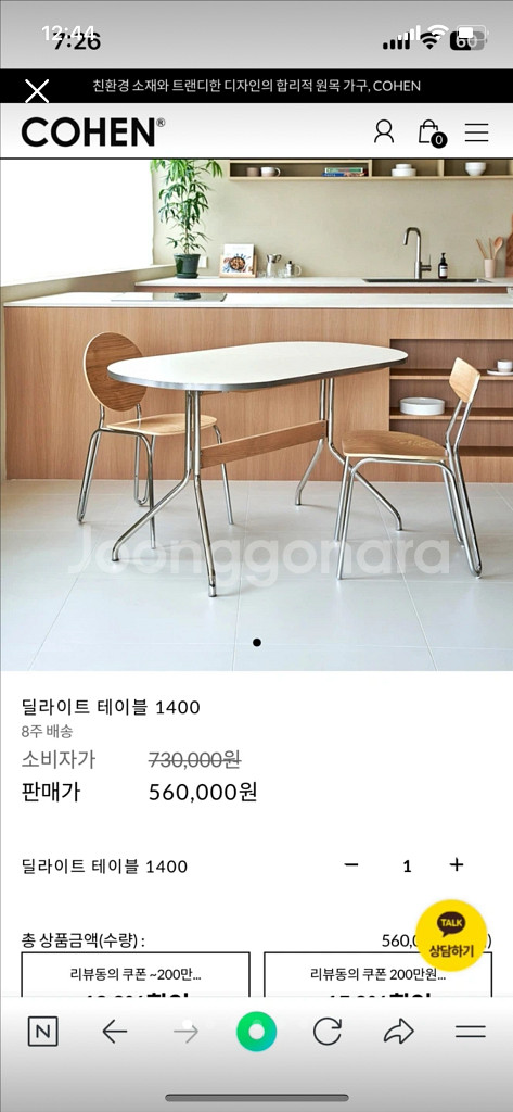 코헨 테이블 식탁 의자 세트에요. 22년에 딜라이트 테이블+의자 4개 구성으로 100만원 정도에 구매했어요. 이사를 가게되서 가져가려고싶지만 이사가는 곳에 테이블이 있어서 아쉽게 올려놔요ㅠ 의자 2개가 밑쪽과 등받이에 손상이 있지만 사용하는데 큰 문제는 없어요 위치는 경기 양평이고 1층까지는 같이 옮겨드릴 수 있어요