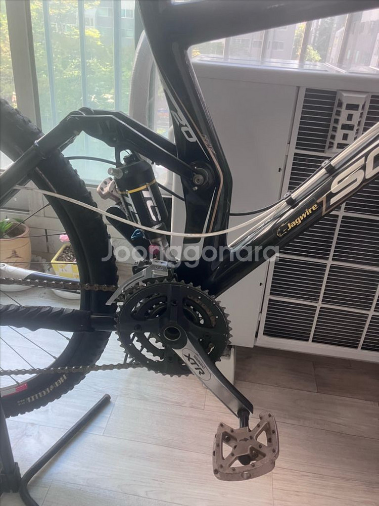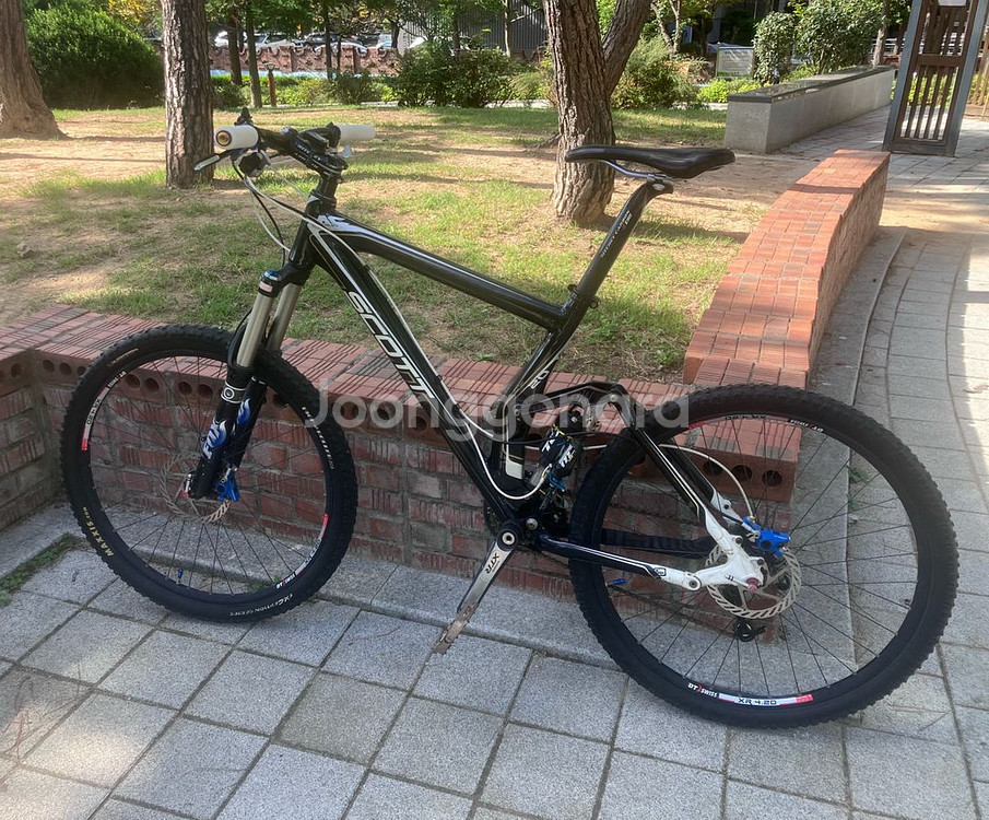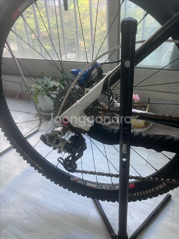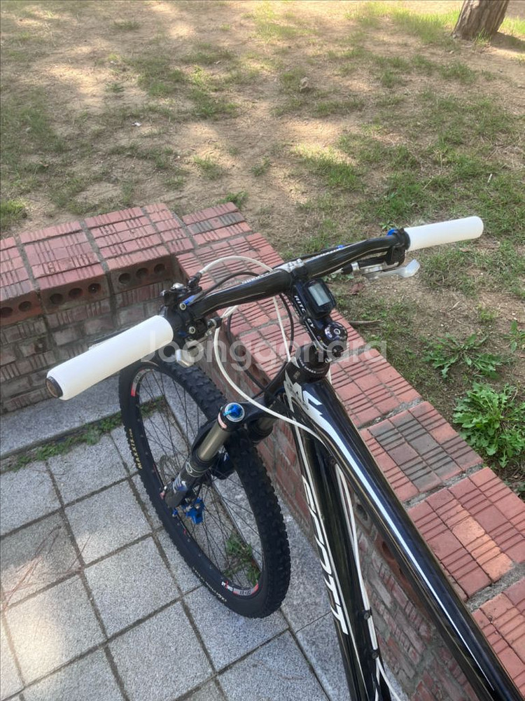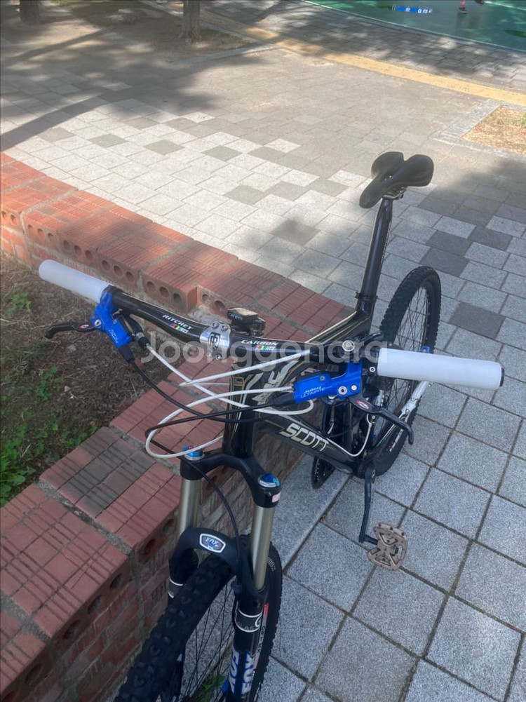 산악자전거 최상급 풀카본 MTB 스캇 지니어스 판매 최상급 풀카본 풀샥 MTB. 스캇 지니어스 산에서 가지고 놀기도 좋고 로드에서도 잘나가서 출퇴근 용으로도 좋은 전천후 mtb 입니다. 두번째 사진이 오늘 그립 새걸로 교체하고 찍은 사진이에요. 기본정비 다해둬서 그냥 가져가서 타시면 됩니다. 세월흔적 외 큰 문제 없습니다. 연식치고는 상태 좋습니다. 10년 전 쯤 (정확한 연식 기억안남) 1300만원 정도에 최상급 부품들로 구성해서 구입한 26인치 풀카본 MTB 입니다. 구동계 xtr 이고, 카본프레임, 리치카본 싯포스트 핸들바 포함 모든 부품 풀 카본으로 튜닝한 최고가 스캇 지니어스 풀카본 풀샥 바이크 입니다. 전면 폭스 탈라스 가변샥 포함. 앞뒤 풀샥 인데도 웬만한 고가의 로드자전거 만큼 가볍습니다. 뒷샥은 완전히 풀거나 중간세기 또는 완전히 잠글수도 있어서 로드 처럼 도로에서도 잘나가고, 산악에서도 최고의 퍼포먼스를 보여주는 전천후 올마운틴 바이크입니다. 프레임 ㅡ 스캇 지니어스 카본 M 사이즈. 샥(서스펜션) 전면. 폭스 가변 탈라스샥. 가변샥이라서 로드와 산악에서 샥의 길이와 강도를 조절하며 탈 수 있습니다. 후면샥. 3단으로 잠그거나 중간세기 완전히 열고 주행이 가능합니다. 림 ㅡ dtswiss, 크리스킹허브. 나이가 드니 체력이 딸려서 MTB 잘 안타지네요. 팔기는 아까워서 베란다에 두고 관상용으로 보는데,,, 임자 있으면 보낼려고 마음 굳혔네요. 오래된 머신이지만 지금도 손보면 천만원대 바이크 퍼포먼스 충분히 만끽할 수 있을겁니다. 프레임 M 사이즈라서 왠만한 성인은 무리없이 다 맞을겁니다. 프레임 싯포스트 핸들등 카본 부품들은 크랙 같은거 없이 상태가 아주 새거처럼 좋습니다. 다만 오래된 머신이라 스프라켓 타이어 같은 소모품 들은 세월의 흔적 있습니다. 자전거 전체 무게를 재보니 고가의 스페셜라이즈드 산악용평페달 장착하고도 딱 12.0 kg 입니다. 페달 빼면 11킬로대에요.