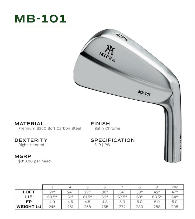 미우라 MB101 아이언 •미우라 MB-101 아이언 •4-P 7아이언 구성 •KBS C-TAPER LITE PREMIUM JV 105샤프트 •손 맛 좋은 아이언으로 유명한 미우라 대표모델 MB101 아이언 •미우라 머슬백 아이언 •미우라코리아정품 (미우라 정품스티커 보유)