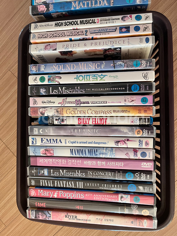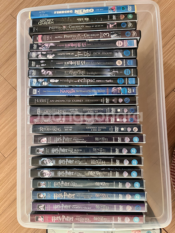 다양한 DVD 영화들을 판매합니다 - 해리포터 시리즈 - 반지의 제왕 - 호빗 - 트와일라잇 - 캐리비안의 해적 - 찰리와 초콜릿 공장 - 사운드 오브 뮤직 등 다양한 영화 DVD가 있습니다 일괄판매합니다. 아이영어듣기에 사용했던 제품입니다.