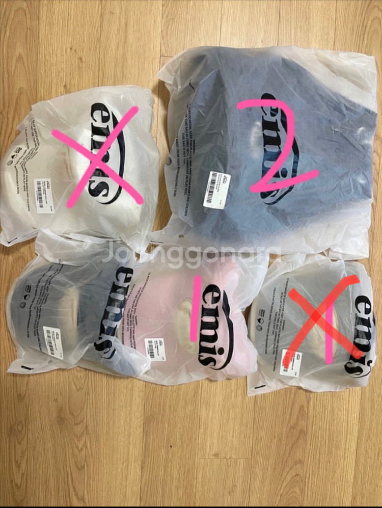 올해 6월에 성수 할인 때 구입한 정품입니다 사진 그대로 비닐 있고 핑크 1, 블랙 1 남아 있습니다 모자 개당 3.0 백팩 5.0 안전결제 수수료 포함된 금액이고 즉입이면 3.0입니다 반택 0.2, 일택 0.4