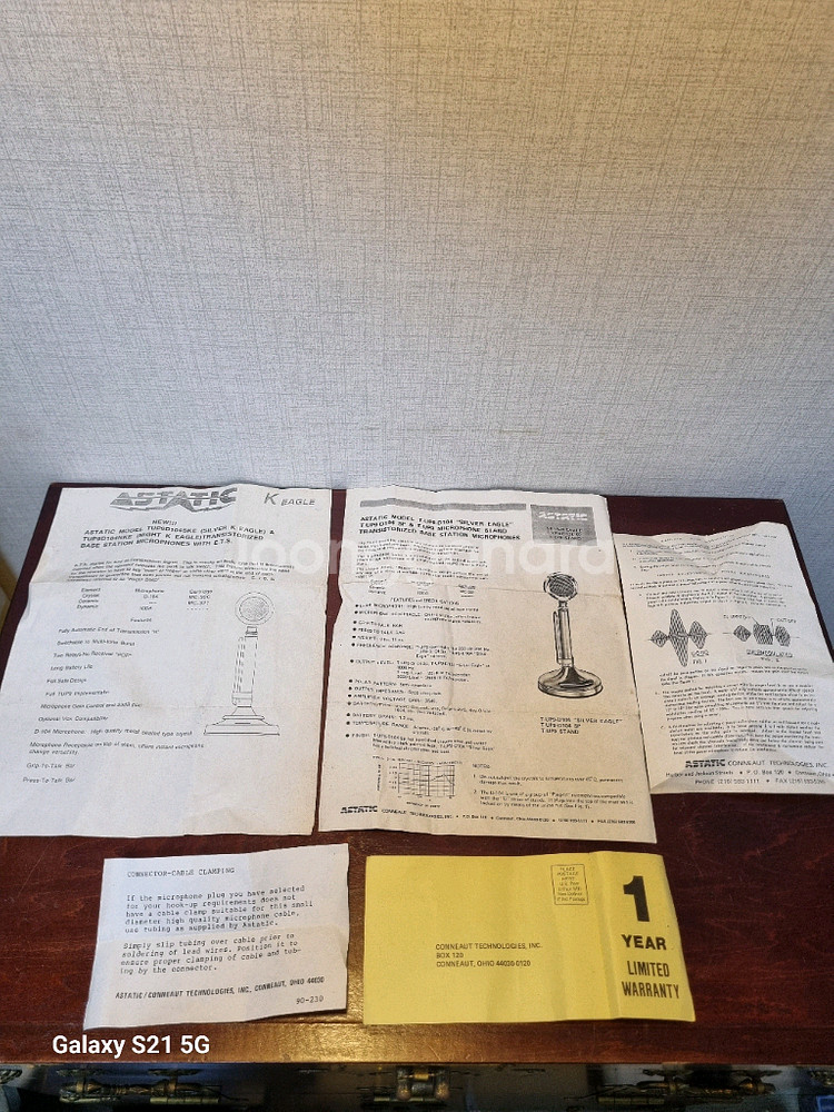 ♡상점 팔로우 해주시면 매 구매시마다 소정의 랜덤 사은품 보내드립니다.^^ ♡ 모든 상품은 무료배송 입니다. ♡ 자정12시까지 결재완료 하시면 다음날 바로 발송해 드립니다. 마이크 단독 사이즈 높이 31cm 폭 15cm 국적 미국 풀박스 미사용 마이크는 수집가 시장에서 희귀하고 가치가 높습니다. 마이크미사용 이고 출시당시 구성품 모두 보유 중입니다. ✅ 제품 정보 요약 ■ 정식 명칭 Astatic TUP9D104SE “Silver Eagle” ✅ 제조사 & 생산 정보 제조사 : ASTATIC / Conneaut Technologies Inc. 생산국 : 미국 (Made in U.S.A.) 지역 : Ohio, USA 브랜드 역사 : 1933년부터 마이크를 생산한 전통 있는 브랜드 ✅ 특징 크리스탈 카트리지(D104 계열) 장착 → 레거시 CB 무전기용으로 유명한 음색 앰프 내장형(Amplified) → 출력 게인 조절 가능 데스크 스탠드형 구조 전면 다이얼형 Push-to-Talk 스위치 고급 크롬 마감 (High Polish Chrome Finish) 케이블은 나선형(코일) 후면에는 미국 국조(흰머리 독수리) 문장 각인 ✅ 동봉 구성품 (사진 기준) 오리지널 박스 매뉴얼 설명서(여러 장) 1 Year Limited Warranty 종이 커넥터/케이블 클램핑 안내문 원래 구성품이 최대한 유지된 매우 희귀한 상태 → 컬렉션 가치 상승 포인트! ✅ 용도 CB 무전기(시민 밴드 라디오) 아마추어 무선(HAM) 방송 장면 재연용 빈티지 스튜디오 데커레이션 ✅ 연결 방식 4핀 플러그 방식 → 일부 장비는 핀 배열 세팅(핀맵)이 필요함 ✅ 시대적 가치 전성기 : 1960–1980년대 CB 라디오 붐 “CB Radio Golden Age”를 대표하는 마이크 중 하나