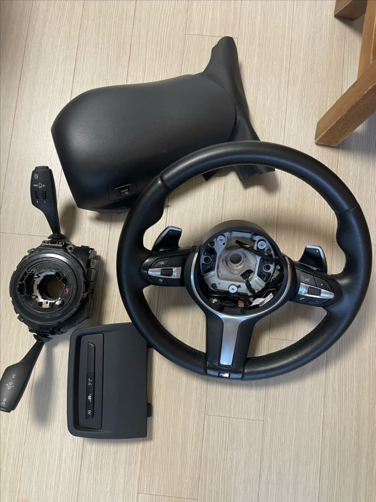 bmw m팩핸들 열선세트 열선핸들 85 풀옵핸들 95 열선컬럼 25 열선스위치 6 탈장착가능하고 열선코딩 생활코딩가능 100%정품이에요