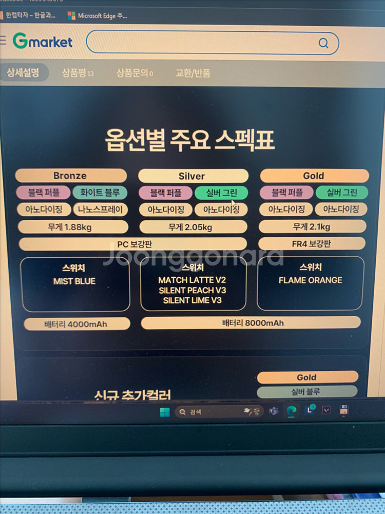 MCHOSE GX87 기계식 키보드 판매합니다 - 실버그린 중옵 (pc보강판, 8000ma 배터리) - 아노다이징 - 2.05kg - 말차라떼 v2 - 조약돌소리 - f2키 및 f5키 윗쪽에 아주 조그마한 흠집(사진참고) - 그 외 상태 최상, 미사용악세사리, 원박스 포함 - 25년 3월 지마켓 구매 (영수증 프린트 있음) - 키스킨 사용으로 키캡 번들거림, 기판 먼지 전혀 없음 - 하판 무게추 보호필름도 제거 안함 - 타 키보드 구매로 판매합니다. - 상태 보장 - 구매 페이지 : https://m.gmarket.co.kr/vi/product/4099643675 - 강남역 직거래