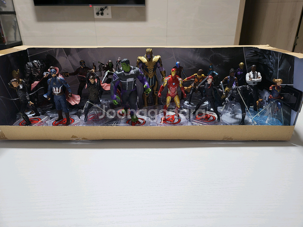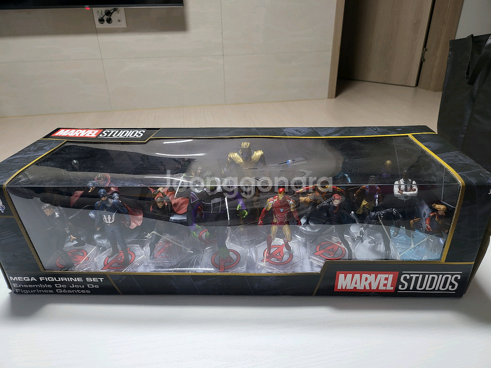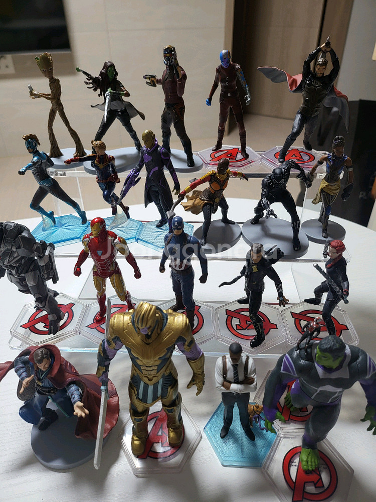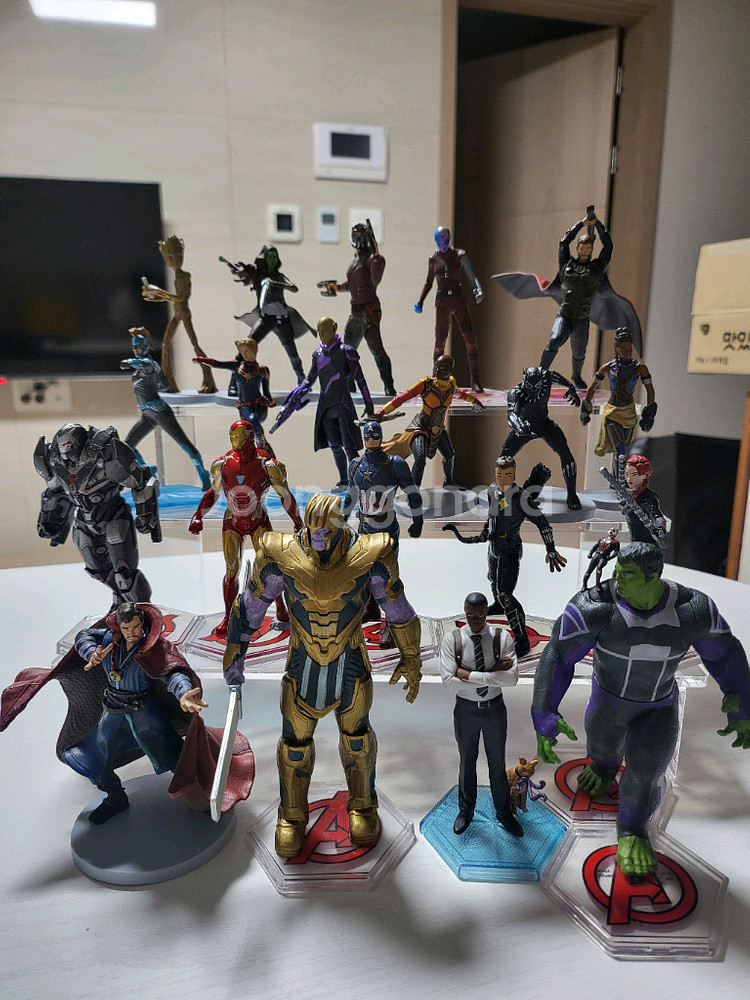 마블 메가 피규어 세트 + 3단 계단 진열대 마블 스튜디오 메가 피규어 세트와 아크릴 3단 계단 진열대 함께 판매합니다. 피규어는 다양한 마블 캐릭터로 구성되어 있습니다. 피규어는 20종 입니다. 진열대 사이즈는 다음과 같습니다: - 가로 28cm - 세로(폭) 18cm - 높이 15cm (층당 5cm) 상태는 사진과 같이 매우 좋습니다.