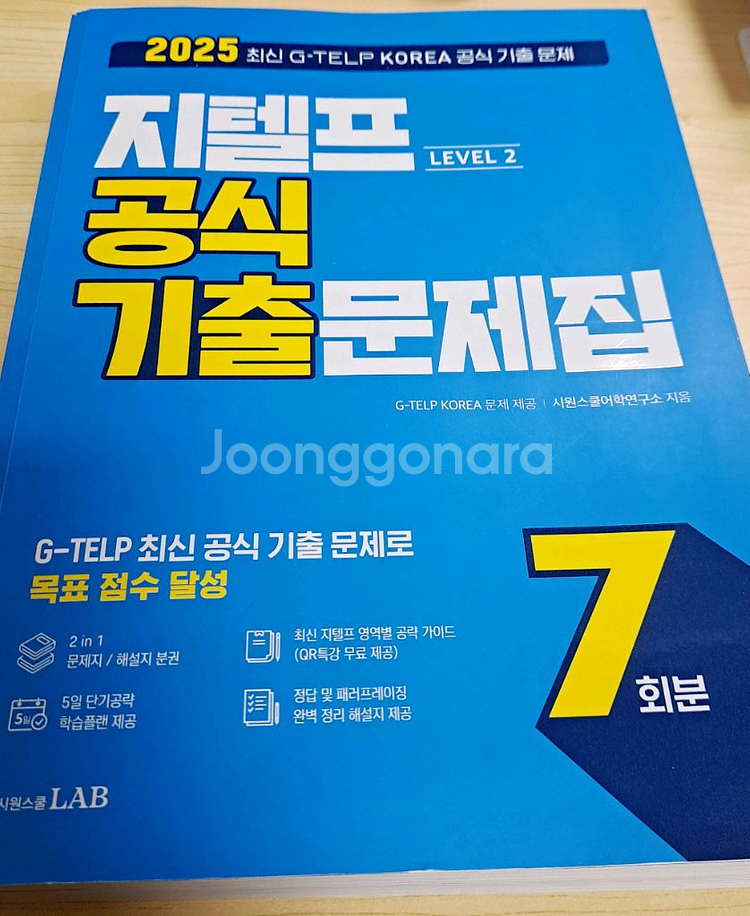 시원스쿨 지텔프 LEVEL2 7회분 기출문제집 판매합니다 앞 장 접은 거 맨 뒤 표지에 제가 구매 당시 지출했던 가격 적은 거(적립포인트 일부 사용) 외 공부 흔적 없습니다 그냥 새책이에요 택배비 제가 부담하여 14,000원에 판매합니다