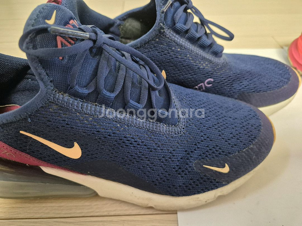 여성 나이키 에어맥스 노스페이스 밀레 뉴발란스 팝니다. 상품 전부 사이즈:235이며 세월흔적 사용감 있습니다.세척 하셔야합니다. 여성 나이키 에어맥스90 SE 애프리콧 사이즈:235 상태:매우 좋아요 운동화가 많아서 기존 싣던 운동화만 싣음 세탁요망 가격:3만5천원 여성 나이키 에어맥스270 사이즈:235 상태:좋아요 세탁필요.에어 이상없음 가격:3만5천원 밀레 여성 패딩 방한 슬립온 사이즈:235 겨울 대비하셔야죠.. 아직 현역제품이네.검색해보시면 나옵니다 3만원 뉴발런스 574 그냥 싣기 좋아요 사이즈:235 전체적으로 오염.사용감 있습니다 세탁필요 1만5천원 노스페이스 울트라 카디악 트레킹화 가볍고 상태 괜찮습니다 사이즈:235 생활 오염.사용감 있습니다 세탁필요. 2만5천원 일괄시가격:13만원(직거래/택배선불) 가객가능 2개이상 구매시 무배 환불&반품 불가능 합니다. 신중히 생각해보시고 상품 문의주세요
