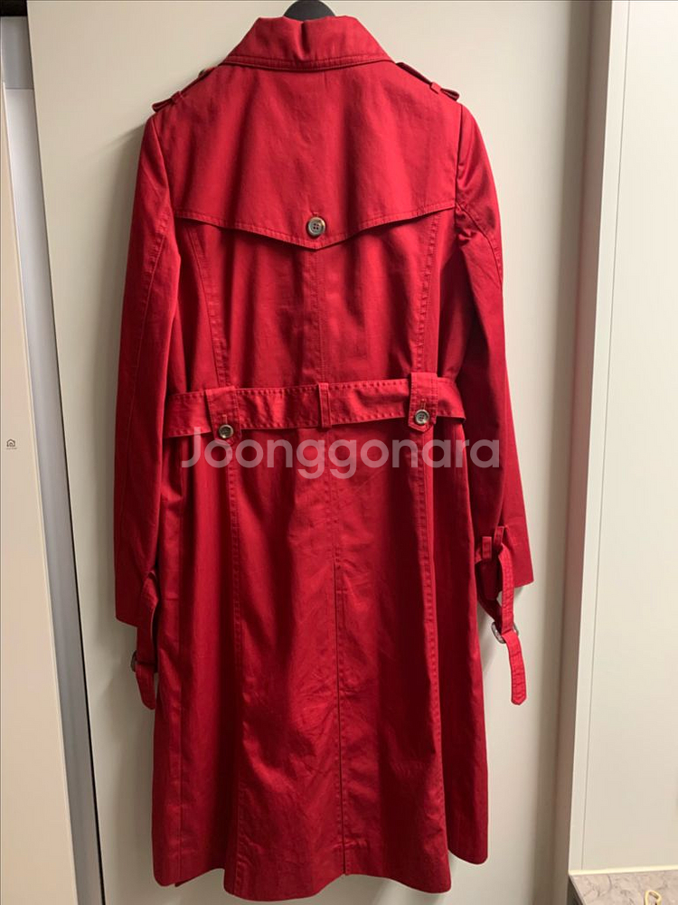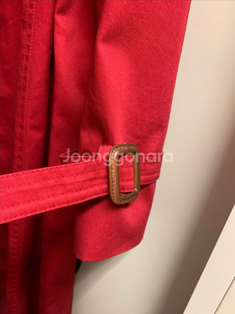 트렌치 코트 55사이즈 레드 거의 새옷 수준입니다 상태 좋아요 55-66까지 가능합니다 손목 버클이 있어 고급스러워요 색상이 진짜 고급지고 예쁩니다 얼룩 이염 없습니다 맨 아래 단추가 떨어졌어요.. 단추는 주머니에 넣어 드릴께요 집에 반짇고리가 없어서요 GS 반값 택배 가능