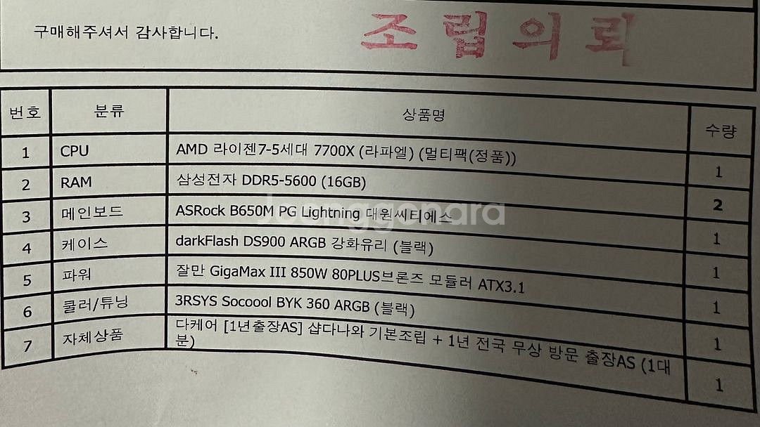 고사양 게이밍 데스크탑 PC입니다 - CPU: AMD 라이젠7 7700X - RAM: 삼성전자 DDR5-5600 32GB - 메인보드: ASRock B650M PG Lightning - 케이스: darkFlash DS900 ARGB - 파워: 잘만 GigaMax III 850W 80PLUS 브론즈 - 쿨러/튜닝: 3RSYS Socool BYK 360 ARGB - 그래픽카드: GeForce RTX3080ti - SSD: SK하이닉스 GOLD P31 NVMe SSD 1tb 최고의 게이밍 경험을 제공하며, 고사양 게임도 부드럽게 실행 가능합니다 게임하려고 구매 후 몇 번 사용 후 게임에 흥미를 잃어 판매합니다. 초기화돼있고 그래픽카드만 박스 있습니다
