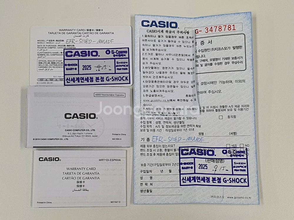 카시오 에디피스 메탈 시계 풀박스 판매합니다. 사파이어 글라스에 100m 방수 지원되는 모델입니다. 신세계 본점 스템핑 보증서 포함 풀박스 구성에 시계 비닐도 뜯지 않은 새상품이고 일명 에얄오크 모델입니다. 서울 직거래나 택배거래 모두 가능합니다
