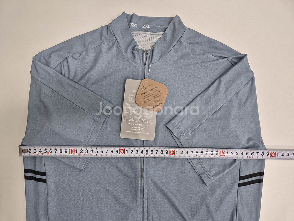 스페란자 라이트핏 반팔져지 J24 라이트블루 2XL사이즈 입니다. 라이트 블루색이 정말 촌스럽지 않고 이쁩니다. 코오롱 기능성 냉감 원단 이라서 굉장히 부럽고 신축성도 좋으며 통풍도 잘되서 엄청 시원하고 가볍습니다. 디자인은 심플하고 후면에 포켓3개와 야간용 반사판 있습니다. 올 여름에 입으려고 한 치수 위로 작년 늦가을에 구매한건데 .. 살이 너무 빠져서 헐렁하네요. 라이딩은 하지 않고 시착만 해서 거의 새거입니다. 아래 상세 사이즈표 참고하세요
