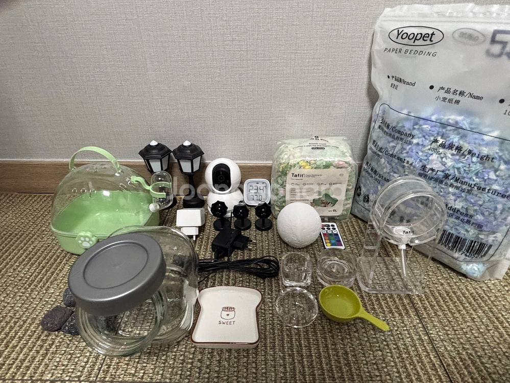 해씨별로 떠나서 판매합니다. 일괄 판매입니다. 쿨거 시 네고 의향 있습니다. 다들 아시겠지만 원가대비 정말 저렴하게 올려요 마휠, 써르써르, 타포만 해도 20만원 훌쩍 넘음 부켓스테이트 3.0 120 리뉴얼 케이지(제일 최신버전임-> 영수증 보여줄 수 있음) 케이지 이동 바퀴, 부켓 전용 2층 홈도 드립니다 손잡이 이동장(탬펫에서 구매) 전봇대 전등*2 천장 자석형 전등*3 TAPO 200 CCTV(전용 천장자석 접합부분 부서져서 순간접착제로 붙여둠, 기능상 하자X) TAPO 스마트허브 H100(cctv,온습도계 연동용) TAPO 스마트온습도계 이케아 푀르바르 꾸미기용 에그스톤*10 써르써르 달 무선 조명 타핏 진공 급수기 색동지(타핏 완품, 타오바오 색동지 거의 안쓴거) 오로라 물그릇(빛나는버전) 각종 그릇(이유식,다이소 식빵 그릇,,, 예쁜 그릇 많음 오바밥만들때 쓰는 귀여운 그릇들..) 마휠 아이보리 거치형(꿀렁임 거의 없음) 나이트엔젤 사각모래존(뚜껑X) 써르써르 2단 기와집(계단 조립부분 파손O, 외관상 전혀 하자 안보이고 기능적으로도 지장 없음) 곰찌 나무 터널 곰찌 조립식 디깅박스(터널 골든형 3개 제공) 타핏 햄스터 관찰존 꽃게모양(위에 꽃게 모형 붙이는거 x) 부켓스테이트 소라 모양 숨숨집 꿀단지 숨숨집 지트펫 자석 관찰존 나이트엔젤 직사각 데크 L 40*18 나이트엔젤 사각데크 M 30*21 나이트엔젤 물결다리 16cm 햄스터 공화국 마휠 자석 데크 부켓스테이트 투명 크리스탈 데크(2개) 25*15 남는 간식도 드립니당 경상북도 경산에서 직거래힙니다