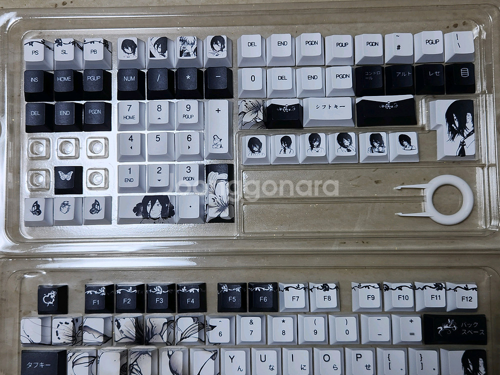 <새상품> 레제 키보드 키캡 134key 화이트 키캡에 레제 흑백 그림이 프린팅 되어 있습니다. "레제가 당신을 기다립니다." ※레제 장패드도 팝니다/같이 구매시 네고 더 가능