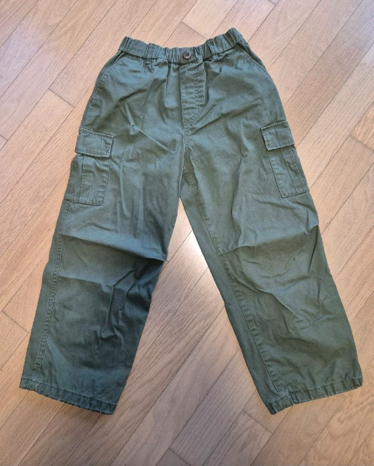 무신사 키즈 카고 팬츠입니다 색상은 카키색이며, 허리 밴딩으로 편안하게 입을 수 있습니다 핏이 예쁘고요 밑단에 조임끈이 있어 스타일 연출이 가능합니다 약간의 사용감은 있지만 전체적으로 상태는 좋습니다 직거래는 문고리 비대면원해요