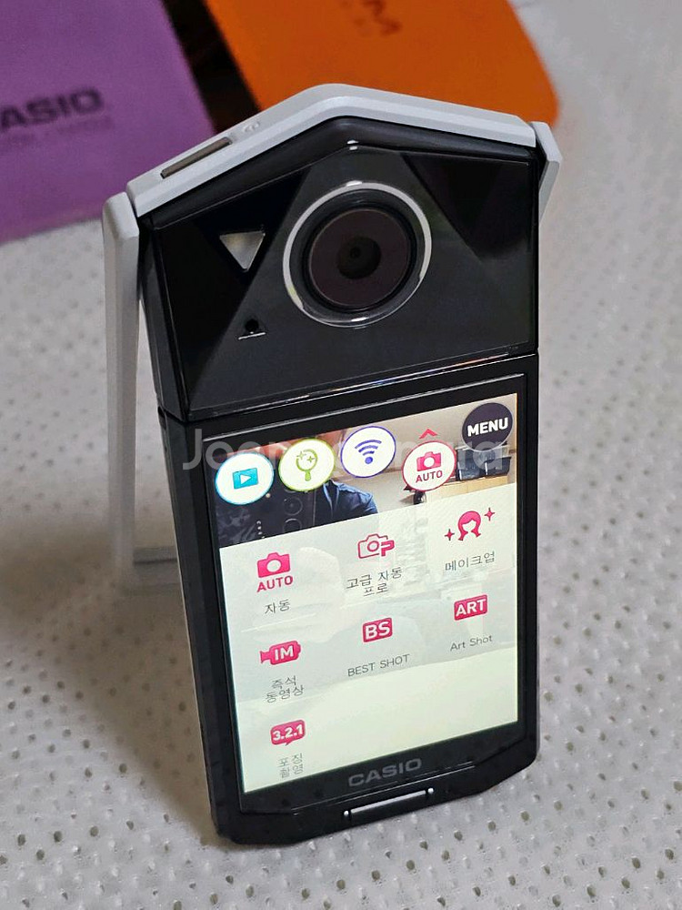 카시오 엑슬림 EX-TR72 디지털 카메라입니다. 이 카메라는 "셀카 종결자" 또는 "뷰티 카메라"로 불리며, 셀카 촬영에 특화된 여러 기능들을 제공합니다. 전체적으로 깨끗하게 사용했습니다. 구성품은 카메라 본체(배터리 내장), 충전기, 그리고 전용 파우치 2개입니다
