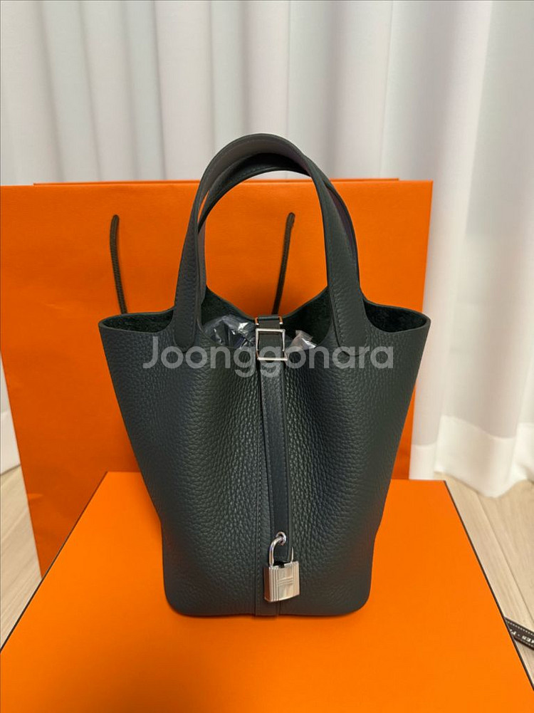 에르메스 피코탄18 베르망그로브 은장 새상품 입니다. 25년 10월 백화점 구매한 새제품이며 k 각인 입니다. 손잡이 안쪽이 그라팡땅 가죽으로 기본 피코탄보다 29만원 비싼 제품으로 더 튼튼하고 고급스럽습니다. 진한 그레이 컬러에 초록 한방울 섞인 색상으로 정말 고급스럽고 예쁜 컬러이며 뉴트럴 계열이라 어디에나 매치하기 좋습니다. 개인 정보 절삭한 인보이스 제공해드리며, 모든 구성품이 있는 새제품 풀박스 입니다. * 예약금 10만원 * 환불 불가