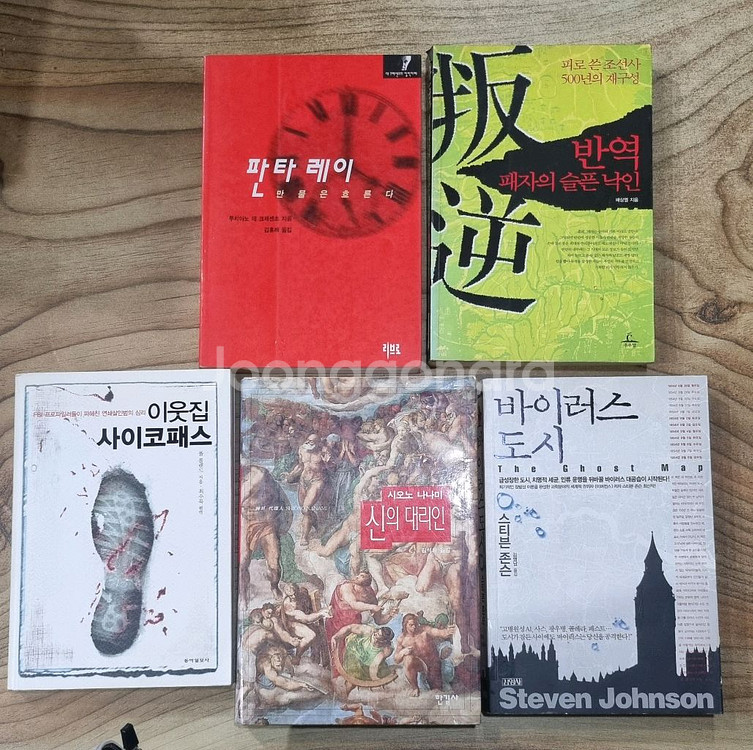 - 판타레이 만물은 흐른다 -(시오노 나나미) 신의 대리인 - (피로 쓴 조선사 500년의 재구성 ) 반역 패자의 슬픈 낙인 - 바이러스 도시 (스티븐 존슨) - 이웃집 사이코패스 (각권 4000원)