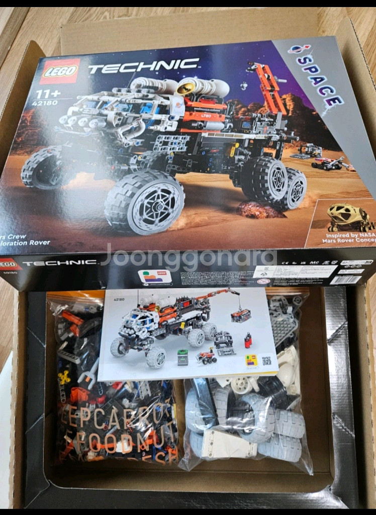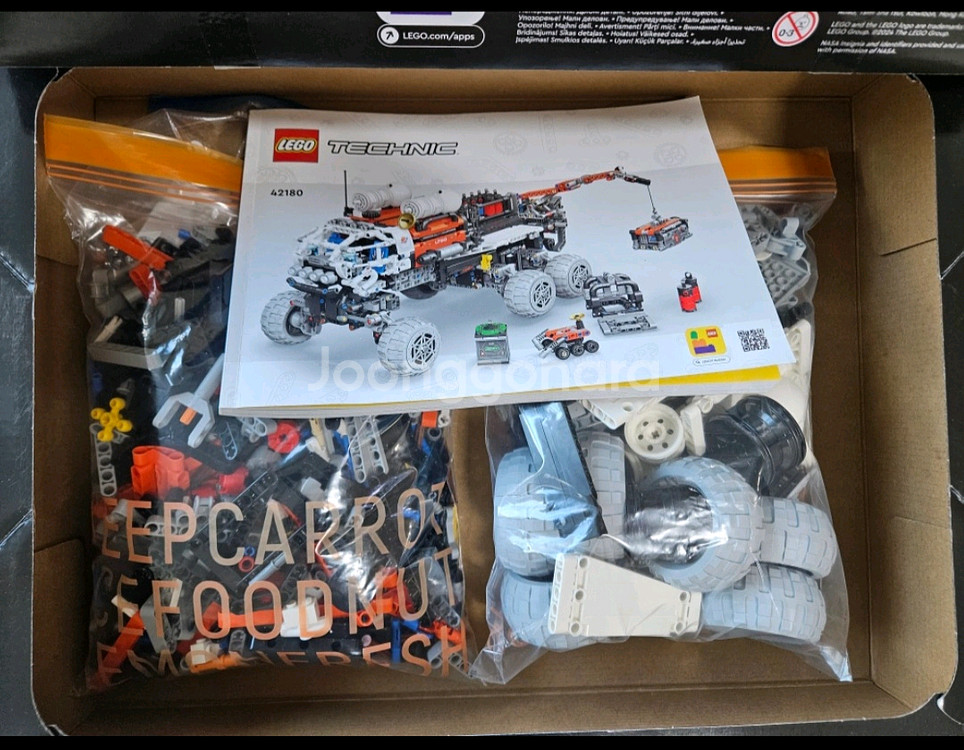 레고 테크닉 42180 화성 탐사 로버입니다 - 11+ 연령 대상 - 1599 피스 - NASA에서 영감을 얻은 화성 로버 컨셉 - 스프링 서스펜션과 6개의 바퀴 - 로버의 화물칸 분리 및 로봇 팔로 화물 들어 올리기 가능 - 크레인, 과학 실험실, 조종석, 생활 공간 포함 - 크기: 높이 23cm, 길이 47cm, 폭 25cm 박스 설명서 모두 새것같아요 선물로 받아서 한번 만들어본 게 전부입니다 분해해서 종류별로 다 새어보고 다 있는지 확인하고 지퍼백에 담아놓았어요