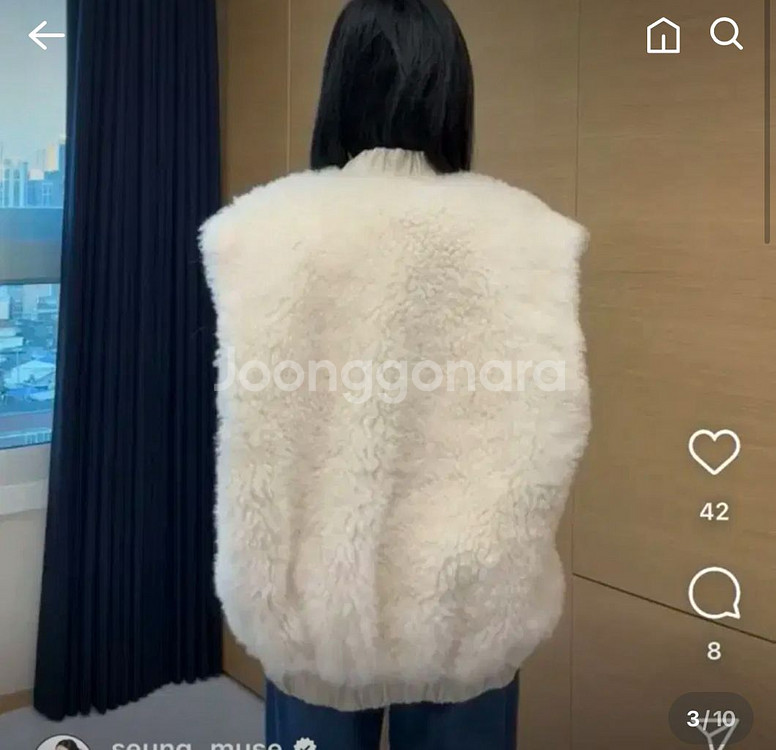 블랙컬러고 착샷은 블랙을 못찾아서 아이보리로 퍼왔어요 저기서 산거고 같은 제품이에요 작년 11월 35만9천원에 구입했고 사이즈 미스로 한번도 못입었습니다 ㅠ 집에서 시착만 1회 하고 교환도 안돼서 쭉 보관만 했습니다 사이즈 m이고 55-66 추천이여! 안감 전부 램스킨이고 겉은 양털로 돼있어요!