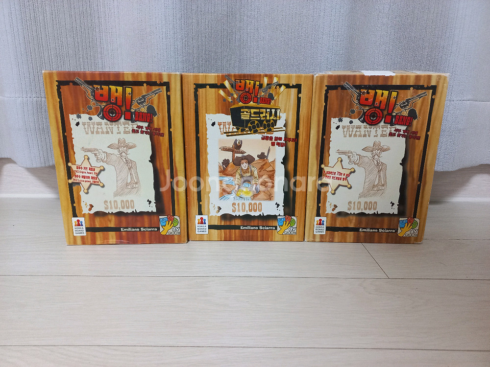 보드게임 뱅 기본판 2개와 확장판 1개 일괄 판매합니다. 온 가족이 즐겁게 즐길 수 있는 보드게임입니다. 박스에 생활감 있지만, 내용물은 깨끗합니다. 모두 한국어판 입니다. 뱅 기본판 1개 가격에 3개 일괄로 가져가세요~ 별도 문의 없으시면 바로 안전결제 부탁드려요! 네고문의, 직거래문의, 추가사진은 정중히 거절합니다.