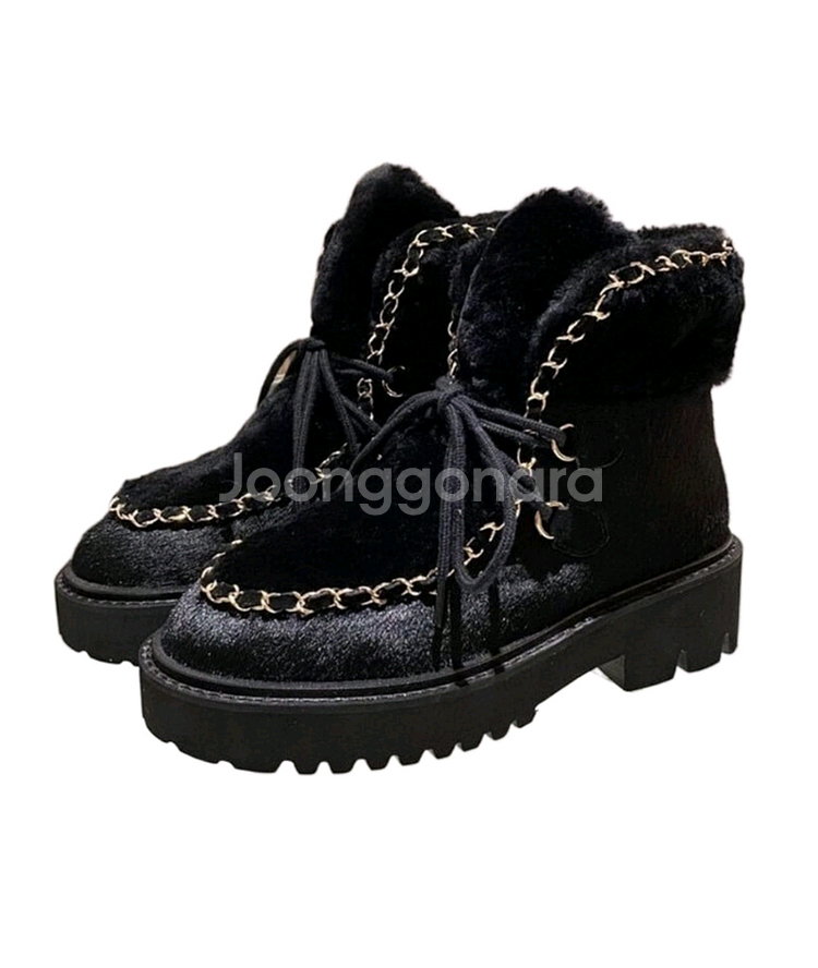 브랜드 - 샤넬 제품명 - 블랙 퍼 송치부츠 구성품 - 보관 케이스 , 더스트 , 종이 사이즈 - 38사이즈 (250) 상태 - 새상품급 샤넬 블랙 퍼 송치 부츠입니다. 검정색 퍼와 송치 재질이 고급스러워요. 굽이 있어서 키높이 효과도 있습니다. 문의 없으시면 바로 안전결제해주시면 됩니다!