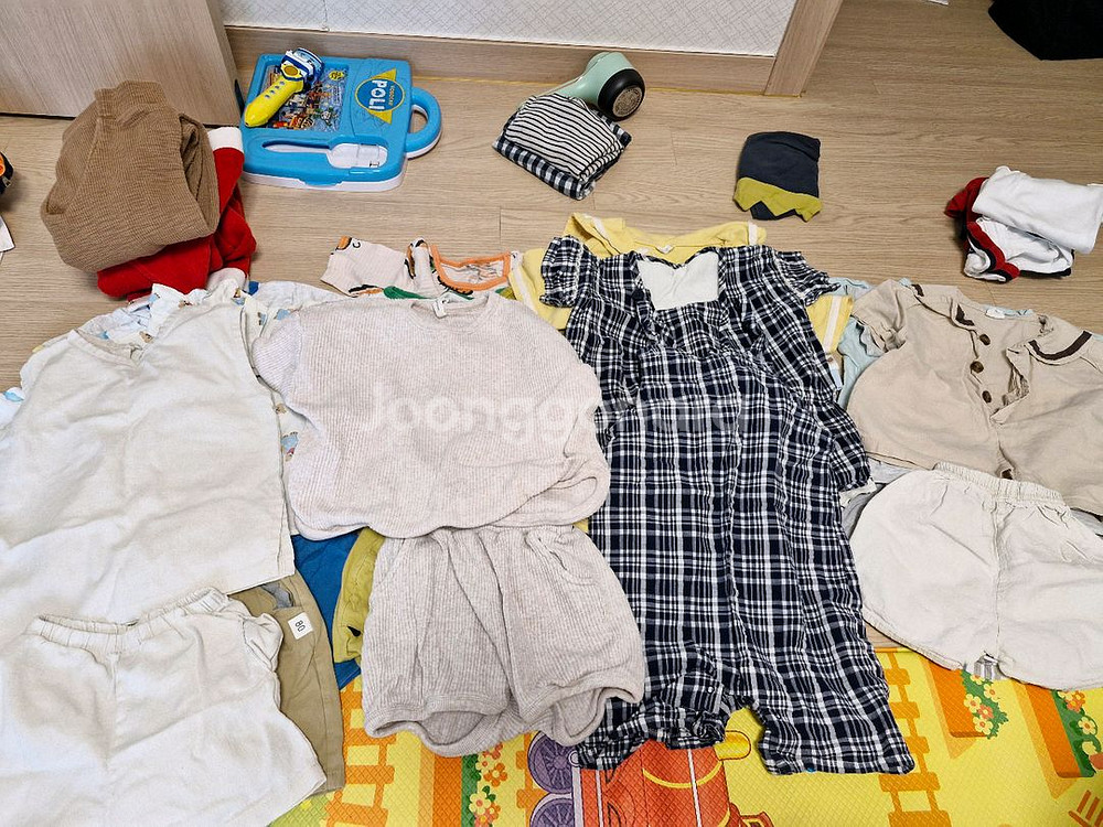 아기 옷 세트입니다 - 바디수트, 티셔츠, 바지 등 다양한 종류가 있습니다 - Balenciaga 로브도 포함되어 있습니다 - Nike, Adidas 의류도 보입니다 내복부터 외투까지 있어요 염색이빠진것들은몇개잇으나 큰오염은없어요 사용감(빨래감) 있어요 중고거래입니다! 교환 및 환불은 불가여용~!