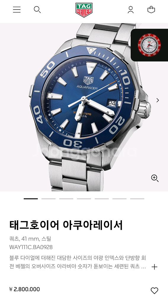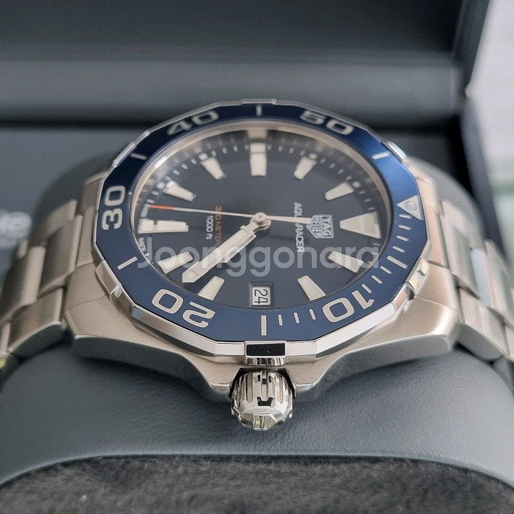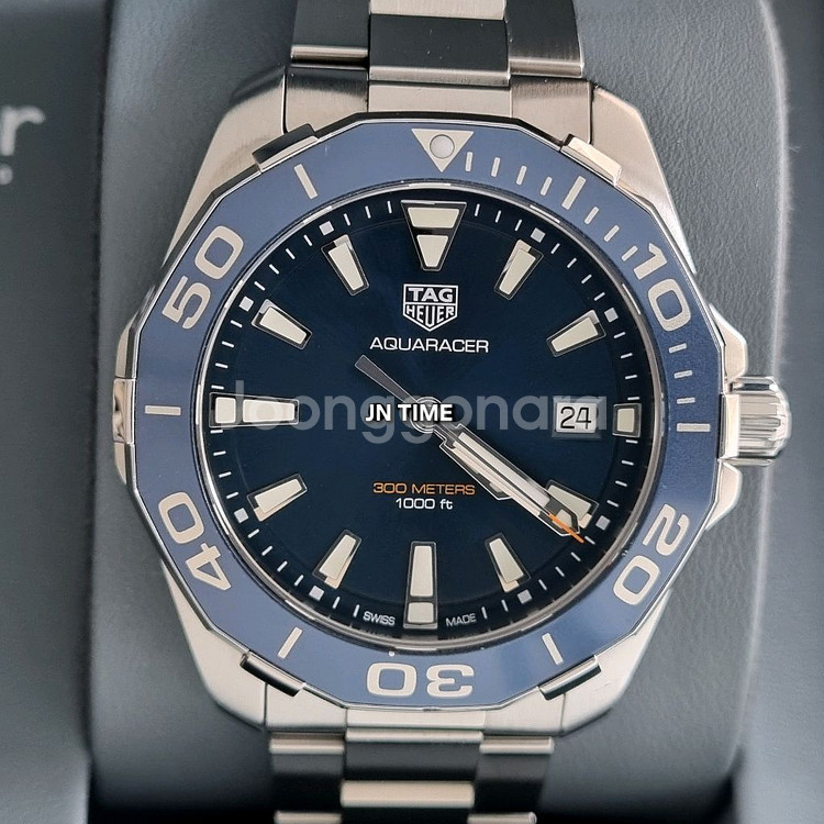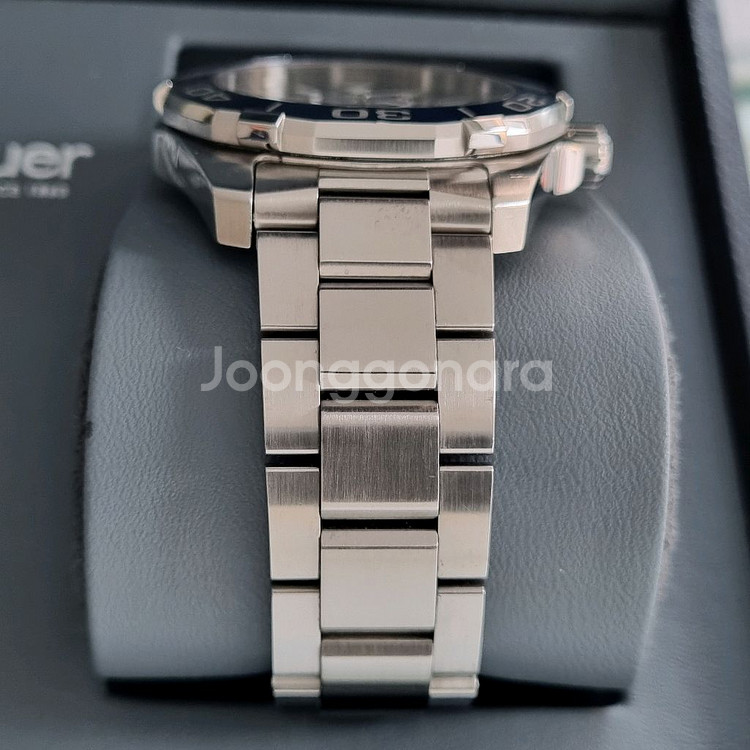 태그호이어 아쿠아레이서 쿼츠 모델로 신형이며 가격,디자인 모두 합리적이라 태그호이어에서 가장 인기가 많은 모델 입니다. 블루 다이얼에 대형 야광 인덱스가 있고 단방향 회전 베젤에 오버사이즈 아라비아 숫자가 있는 정교한 쿼츠 시계입니다. 베젤은 강철과 알루미늄으로 만들어 졌고 브러시 처리 및 광택 처리된 41mm 스틸 케이스에는 6개의 스터드가 장착 되어 있어 다이빙 장갑을 끼고도 쉽게 다룰 수 있습니다 . 가시성을 위해 사파이어 크리스탈 내부는 반사 방지 처리되어 있습니다. 통합된 다이버 익스텐션을 사용하면 스틸 브레이슬릿을 슈트 위에 착용할 수 있습니다. 완벽한 방수 및 충격 방지 기능을 갖춘 진정한 다이빙 워치입니다. 이 모델은 베젤이 스틸과 알루미늄 두가지 로 나오는데 검판이나 청판으로 나오는 알루미늄이 스틸 베젤 보다 앞도적으로 인기가 많습니다. 그리고 청판은 여름에 더 인기가 많아서 중고 가치가 더 높아지면서 상태좋은 특히 중고로 구하기 어렵습니다. 쿼츠라 관리,유리비 저렴하고 충격이나 기타 고장 위험이 적어 사회 초년생들이나 자주 시계를 착용하지 않는 분들에게 적합 합니다. 그리고 동양인들 손목둘레가 17~18cm라 41mm가 가장 저스트 하기 때문에 많이들 이 사이즈를 찾고 리셀도 잘되고 있습니다. 43mm는 손목둘레 19cm 이상인 손목이 아주 두꺼운 분들에게 적당한것 같습니다 구입한지는 좀 되었지만 실착 3개월 미만 이라 상태 아주 좋습니다. 고민하는 순간 팔리고 없으니 빠른 초이스 해주세요. 모델번호 - WAY111C.BA0928(청판) 상태 - 새제품 대비 92% 사이즈 - 41mm 무브 - 쿼츠 현리테일가 - 280만원 구입시기 - 2019년 구입한곳 - 국내백화점 구성품 - 박스,보증서,책자,여분링크 ## 직거래는 전남 광양 매장에서 가능하고 택배는 선입금 택배거래만 가능합니다. (안전결제 불가!!) 그리고 에누리 안됩니다. (에누리 문의 주시면 답장 없이 차단하겠습니다)