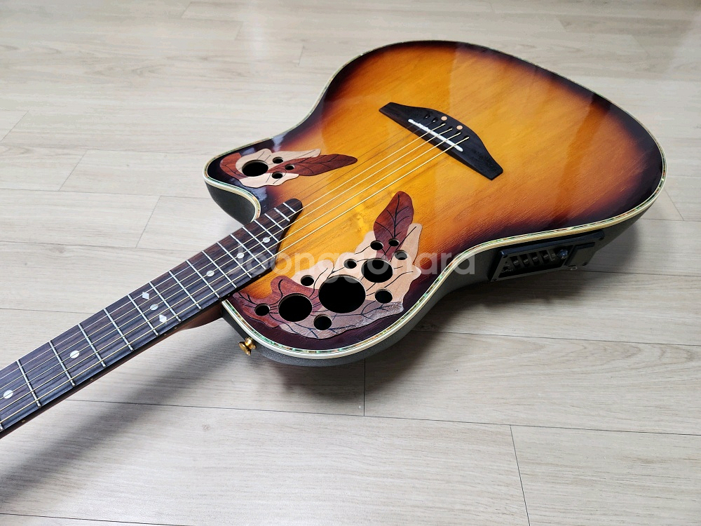 UNIWELL 국산 제작 오베이션 통기타 판매 합니다. 비맞은 물고기 바디 디자인 선버스트와 멀티 사운드 홀이 적용되 있습니다. 픽업 내장으로 엠프 연결시에도 훌륭한 사운드를 내줍니다. ^^ 넥 상태 훌륭하며 , 지판 크리너 및 줄교체 까지 완료 되어 있어 바로 연주 가능합니다.!! 서울 직거래 및 택배 가능합니다. 금액은 14만원 입니다. ☞ 육이오일 - 사사구이