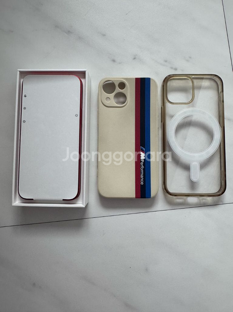 아이폰 13 미니(RED) 128G 모델입니다 - 박스 포함(케이스 2개) 같이 드립니다 상태는 사진과 같이 앞,뒤, 카메라 까지 강화유리 붙여 있으며 생활 스크래치 조차 일절 없이 S급 상태 입니다 카메라 왼쪽(보호유리), 오른쪽(커버형) 배터리 성능 84% 로 짱짱 합니다 찔러보기 절대 사절 꼭 하실분만 편하게 문의 주세요 ***-****-****상품 정보 내 개인정보는 자동 보호됩니다. 안심결제로 안전하게 거래하세요.