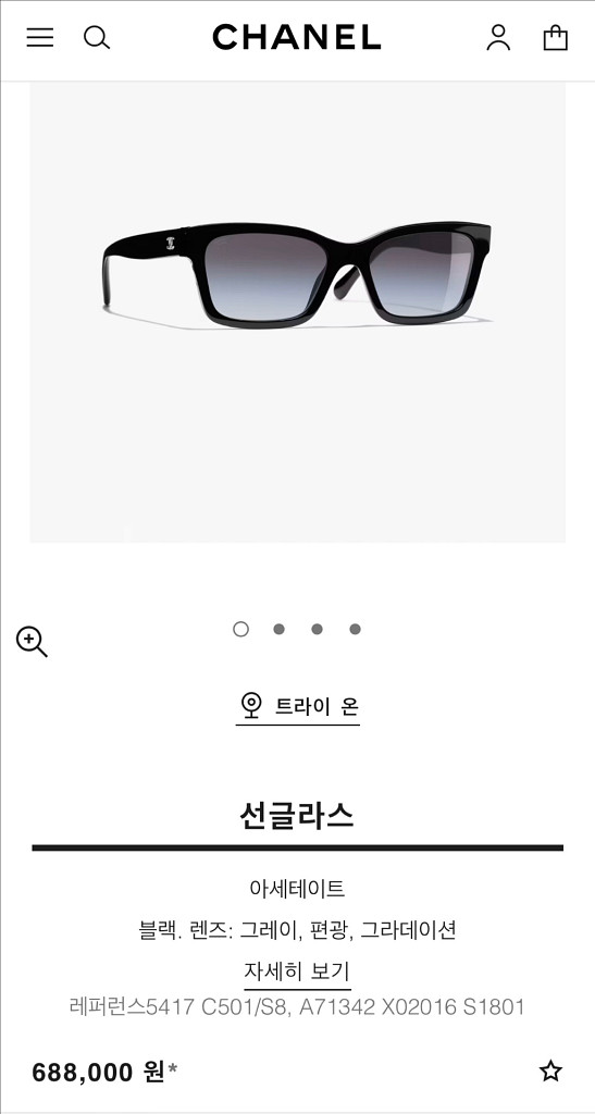 샤넬 선글라스 래퍼런스 5417 입니다. 현재 공홈에서 688000원 판매하고 있어요 일본 후쿠오카 다이마루백화점에서 23년 11월에 구매했습니다. 쇼핑백, 상자, 케이스, 인보이스 풀세트입니다. (안경닦이는 사용하지 않은 새것입니다) 래터링이 이쁘고 옆에 샤넬로고가 이뻐서 샀는데 저한테 어울리지 않아서 사고 나서 몇 번 쓰지도 못하고 보관만 했어요. 상태는 깨끗한 편이에요. 40만원에 팔고 직거래로 송도5동에서 가능합니다.