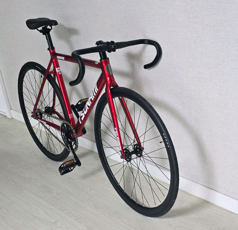 쓰나미 SNM100 픽시 자전거입니다 한번도 타지않은 새제품 입니다.M사이즈 (앞,뒤 브레이크, 스트랩,바테이프 전부 포함)