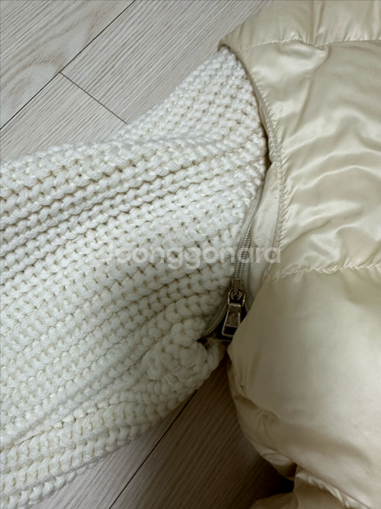 몽클레어 키즈 니트패딩 입니다. 버터크림 색상으로 따뜻하고 포근합니다. 니트 소매 디자인이 특징입니다. 니트 한겹이 아니고 니트 안쪽에도 패딩천이 덧데어져 있어 더 따뜻합니다. 팔부분은 지퍼로 분리가능하여 패딩조끼로도 입을 수 있습니다. 사이즈는 150(12A)입니다. 키즈 사이즈이나 성인 55~55반까지도 가능합니다. 가벼우면서도 보온성이 뛰어나 따뜻하게 입을 수 있습니다 상태는 좋습니다 옷 안쪽 허리스트링 한곳 떨어졌습니다.(사진참고)