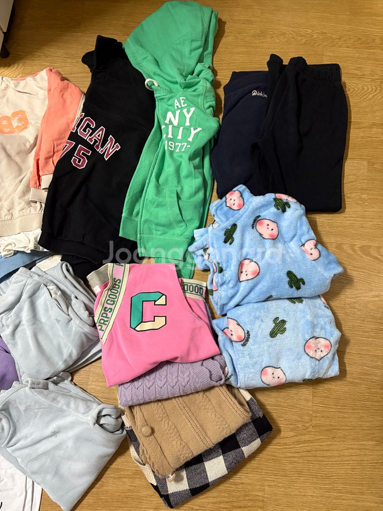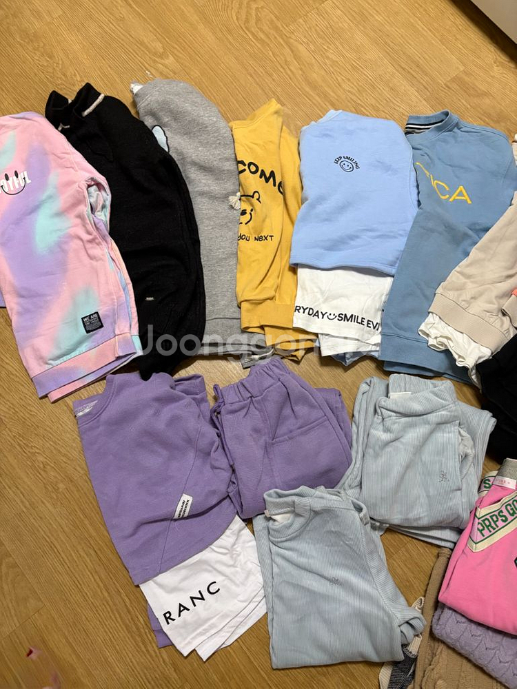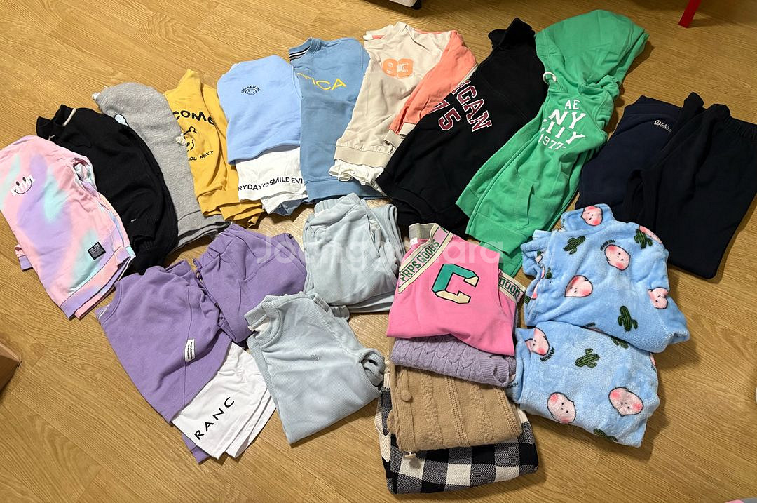 지금 입을수 있는 옷과 겨울옷들입니다 지퍼팩에 넣어나서 좀 구김이 있네요 티8개 ,후드집업1개,바지2개, 세트옷2개,조끼4개.수면잠옷 상태좋은옷만 빼서 판매해요 몇번안입은 옷들도 있구요 일괄만 판매해요 부피가 있어서 일반택배만 가능해요