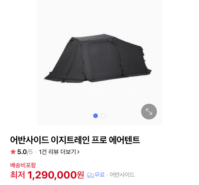 - 어반사이드 이지트레인 프로 카키 에어텐트+ 전용이너텐트 - 2025년 8월 구매 - 10월 25일 1회 사용 - 구성품 모두 있고, 택배로 왔던 박스까지 있음 - 4인가족이 사용하기엔 다소 작아서 판매함 사진은 온라인 판매사진 캡쳐하였습니다.어제 1박한 거의 새제품입니다. 부피와 무게가 있어 가급적 직거래 희망합니다.