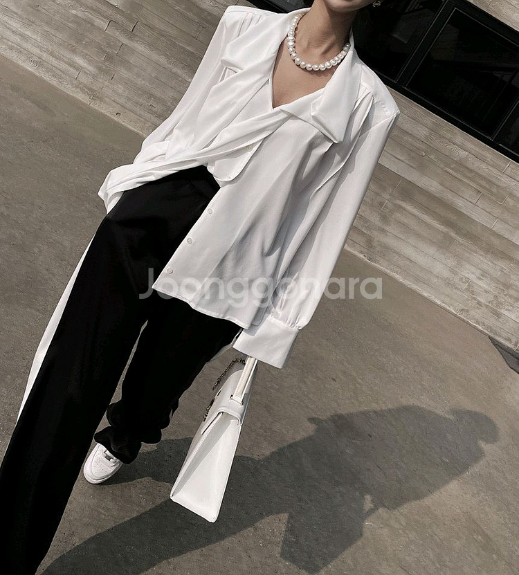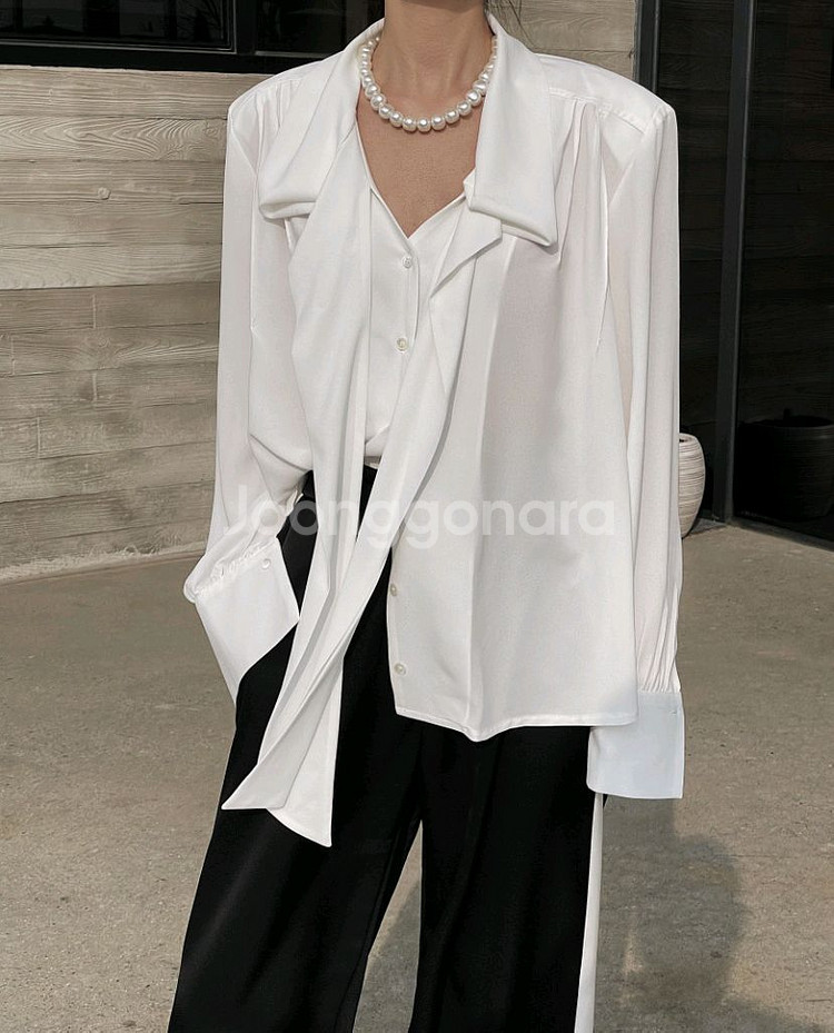 챠르르하게 몸에 흐르는 실키한 원단으로 더욱 여리한 핏감을 나타내는 블라우스예요, 어깨에는 패드가 라이닝되어 오버한 실루엣이 드러나는데 쳐짐없이 엣지있게 어깨라인을 살려주어 핏감이 정말 정말 예뻐욤 보통의 타이 블라우스와는 다른 고급스럽고 세련된 디테일이에요 ..♡ 소재 폴리 100% 두께 얇음 / 신축성 없음 / 비침 있음 / 안감 없음 / 어깨패드 있음 시착후 보관중입니다