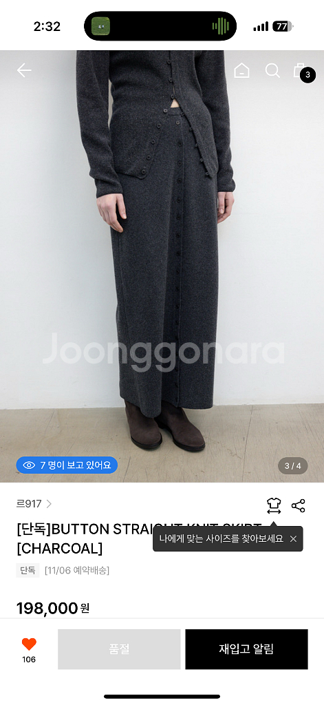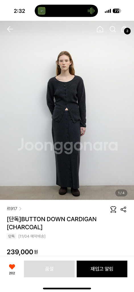 르917 BUTTON DOWN CARDIGAN [CHARCOAL], BUTTON STRAIGHT KNIT SKIRT [CHARCOAL] 36사이즈 세트로만 판매합니다 1회 착용한 상품으로 오염없습니다 단추도 같이 동봉해드립니다