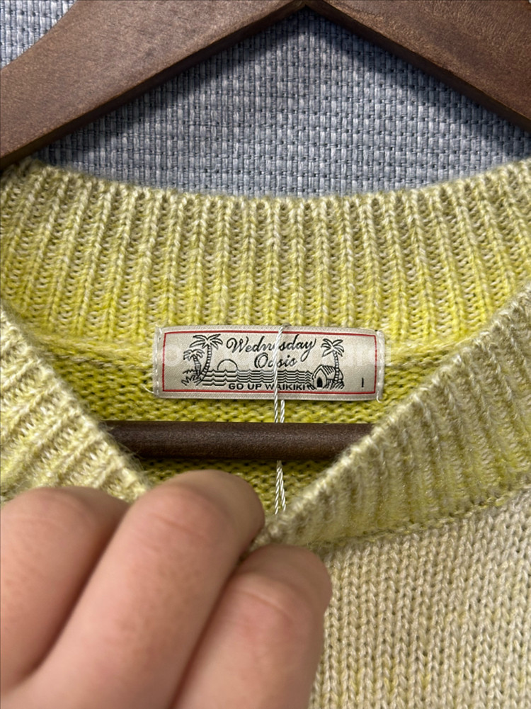 화사한 컬러감이 돋보이는 Wednesday Oasis의 크루넥 니트입니다 옐로우와 베이지가 자연스럽게 섞인 그라데이션 패턴으로 시선을 사로잡는 포인트 아이템이에요 가볍고 유연한 비스코스 혼방 소재로 부드럽게 떨어지는 핏과 편안한 착용감을 자랑합니다 실측 size (cm) 가단 : 62 총장 : 73 구제의류 특성상 미세한 오염, 하자 존재할 수 있으니 예민하신 분들은 피해주시면 감사하겠습니다. 모니터 및 휴대폰의 해상도에 따라 상품의 실제 색상과 다소 차이가 있을 수 있습니다. 꼼꼼히 확인 하나 미처 발견하지 못한 미세한 흠 있을 수 있습니다. 새 옷 같은 컨디션 원하시는 분은 패스 부탁드려요