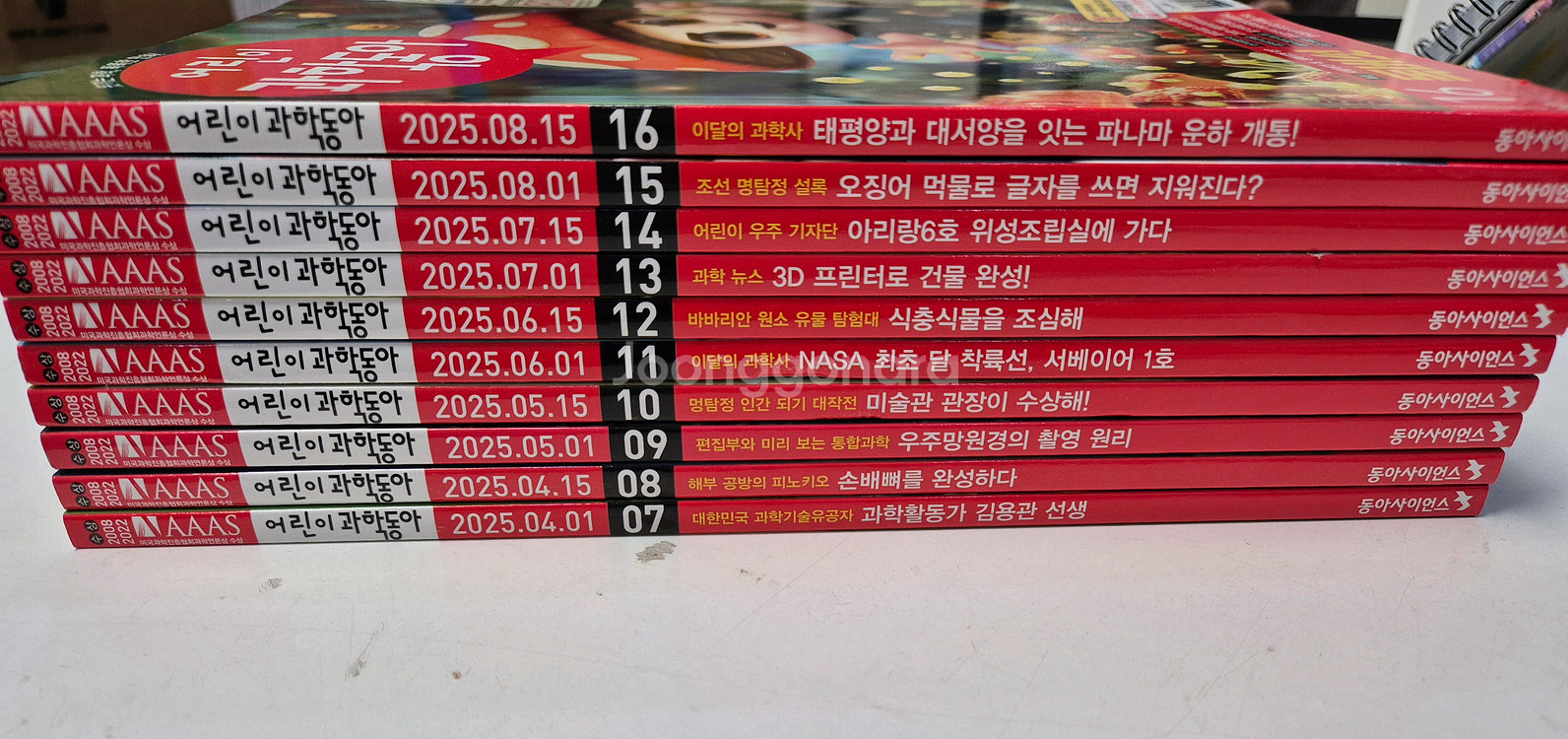 어린이과학동아 : 2025년 총10권 (4월~8월 : 7호~ 16호) 미활용 과월호- 상태좋고 깨끗합니다. 2024년 과월호도 추가구매 가능합니다 고학년용 과학동아+수학동아 추가가능, 정기구독신청 가능 채팅 늦게 보면 문자로 연 락 주세요 직거래~ 전주 / 택비 ~추가 또는 착불 / ☎️ 01공 - 삼육53 95팔팔