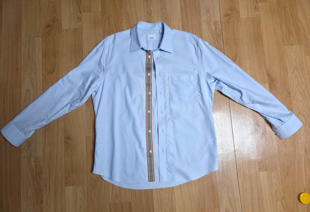 - 버버리 CLAVERDON 로고 자수 코튼 긴팔 셔프 PALE BLUE 블루 셔츠, 구입가 208,000원 - 소매 기장 수선 후 착장 1회 미만으로 보관 상태 매우 양호, 택 및 단추 구성품 포함 외 업로드 사진으로 보관 상태 확인 가능 - 제품 사이즈 L : 실측 사이즈, 총장 79cm / 가슴 60cm / 어깨 50cm / 소매 기장 62cm - 노리턴 조건으로 택비 포함, 판매가 → 120,000원(택비포함)