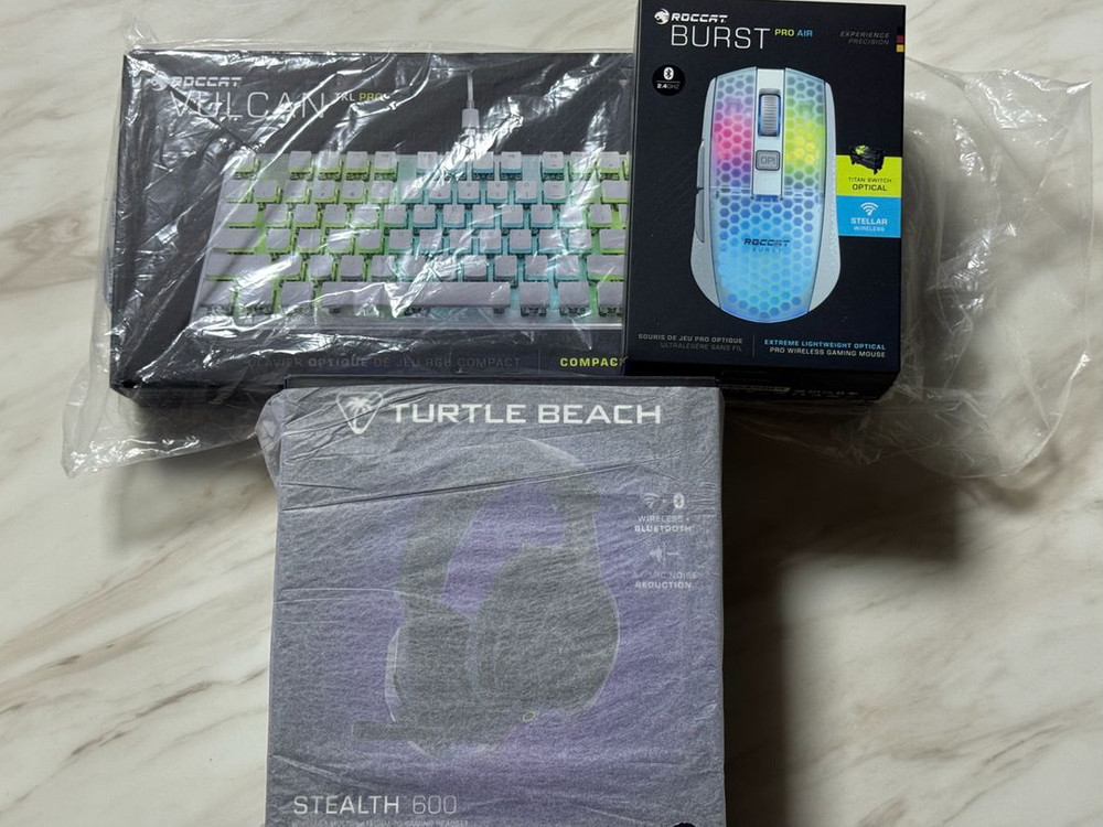 로캣/터틀비치사의 게이밍 기어들입니다. 벌칸 TKL PRO (영 자판 키보드) 버스트 프로 에어 (무선 마우스) 스텔스 600 gen3 (무선 헤드셋) 구성이며 키보드와 헤드셋은 미개봉 새제품, 마우스는 몇 회 가볍게 사용 후 그대로 보관한 상태입니다. 각 정가 10만원 중반대 제품들인데, 일괄로 정말 저렴히 판매합니다. 게이밍을 시작하려는 이에게 차고 넘치는 조합입니다. 직거래시 7호선 신대방삼거리역 근처 성대시장
