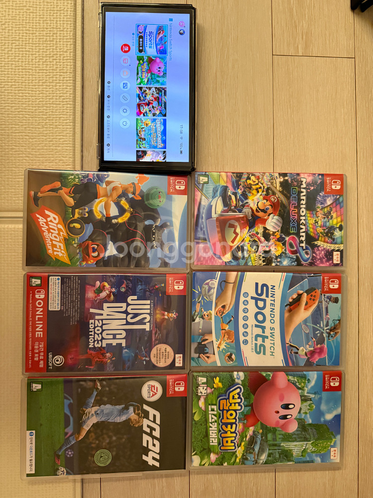 닌텐도 스위치 풀세트 사진속 구성품 모두 포함 판매합니다 - 다양한 게임 타이틀과 조이콘 포함 - 링피트와 스포츠 게임 액세서리도 함께 드립니다 온 가족이 함께 즐거운 시간을 보낼 수 있습니다 가족, 친구들과 함께 즐거운 게임을 즐겨보세요 실사용 얼마 안하고 집에 모셔두기만 했어요. 밖에 가지고 나간적 없어서 기스도 없습니다. 총 구매 가격 100만원 이상 -> 50만원에 판매합니다. 4인가족 풀세트 게임 즐겨보세요 :) 쿨거래 네고 가능 !!
