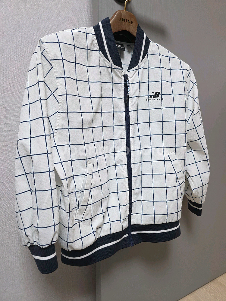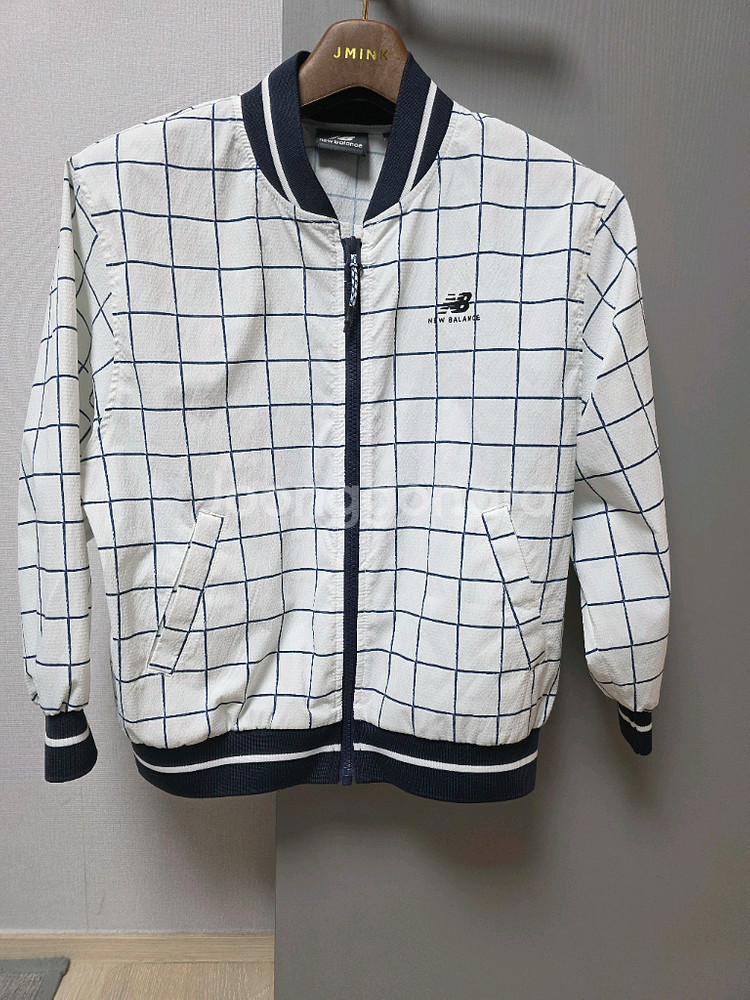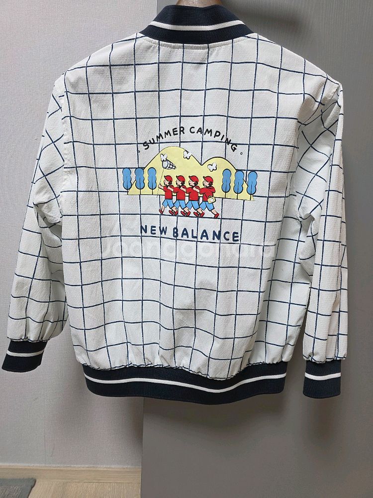 뉴발란스 캠핑 자켓입니다 흰색 바탕에 네이비 체크 무늬가 있고, 뒷면에는 캠핑 그림이 그려져 있습니다 바람막이 소재로 되어 있어 가볍게 입기 좋습니다 145호 아이 혼자 한철입어 깨끗해요 택배는 구매자 부담입니다