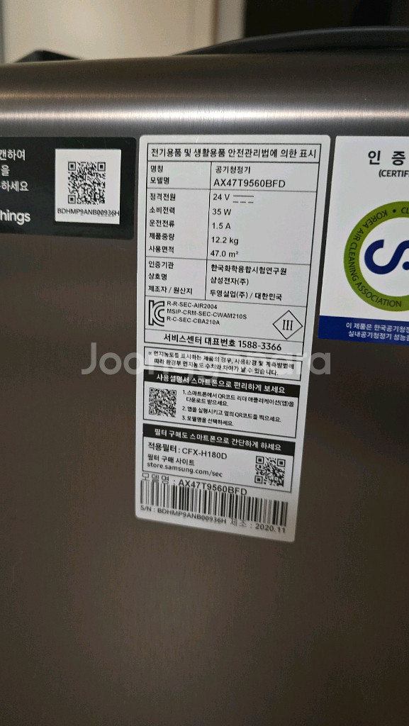 삼성 큐브 공기청정기 AX47N9980SSD AX47T9560BFD 팝니다 상태는 둘다 매우 양호하고 정상작동 합니다 각 9만원이고 같이 구매하시면 2만원 깍아드립니다